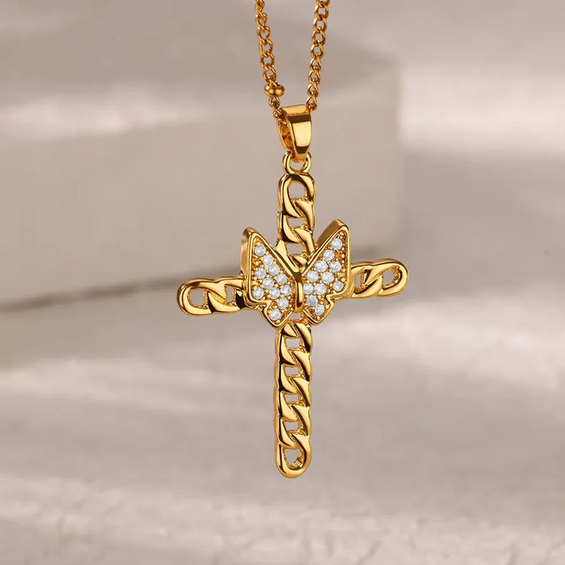 Wholesale Jewelry Retro Classic Style Cross Devil's Eye Snake Copper Plating cable chain Pendant Necklace