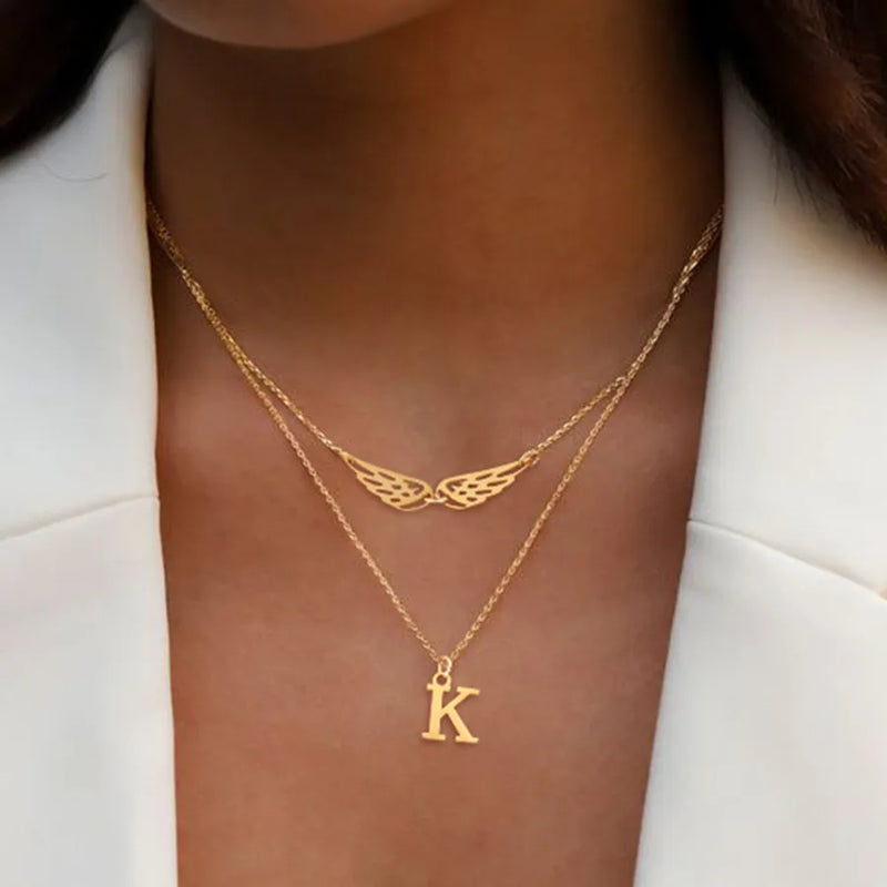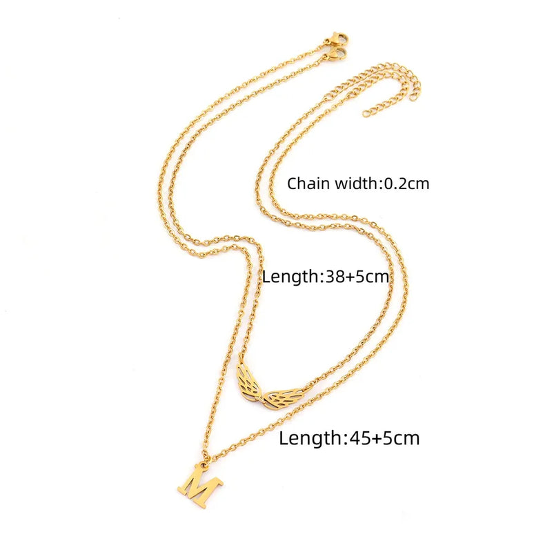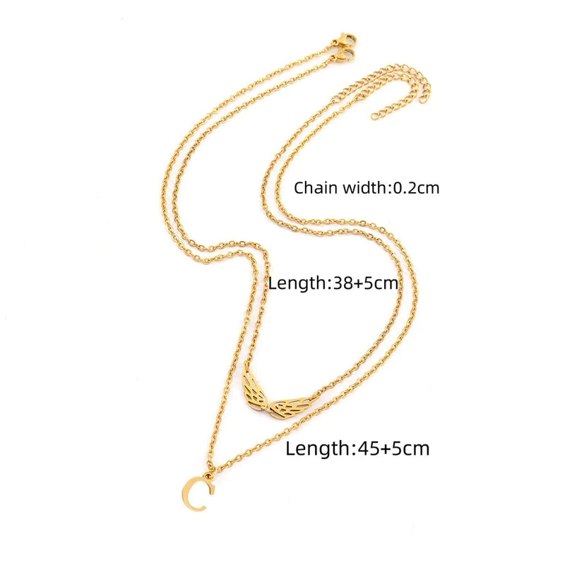 Wholesale Jewelry Simple Style Classic Style Angel Wings Letter 201 Stainless Steel 304 Stainless Steel cable chain Pendant Necklace