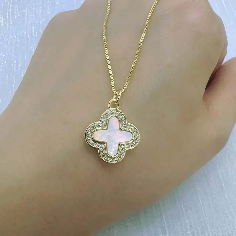 Wholesale Jewelry Simple Style Classic Style Commute Four Leaf Clover Copper Acrylic Zircon 18K Gold Plated Inlay box chain Pendant Necklace