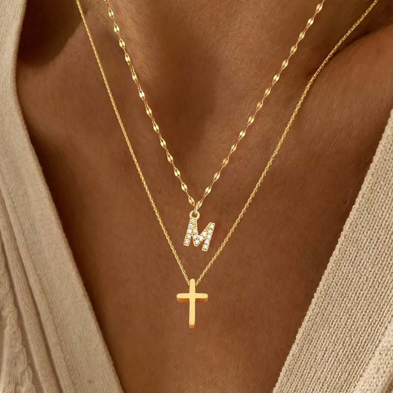 Wholesale Jewelry Simple Style Classic Style Cross Letter 201 Stainless Steel 304 Stainless Steel Copper Lip Chain cable chain Pendant Necklace