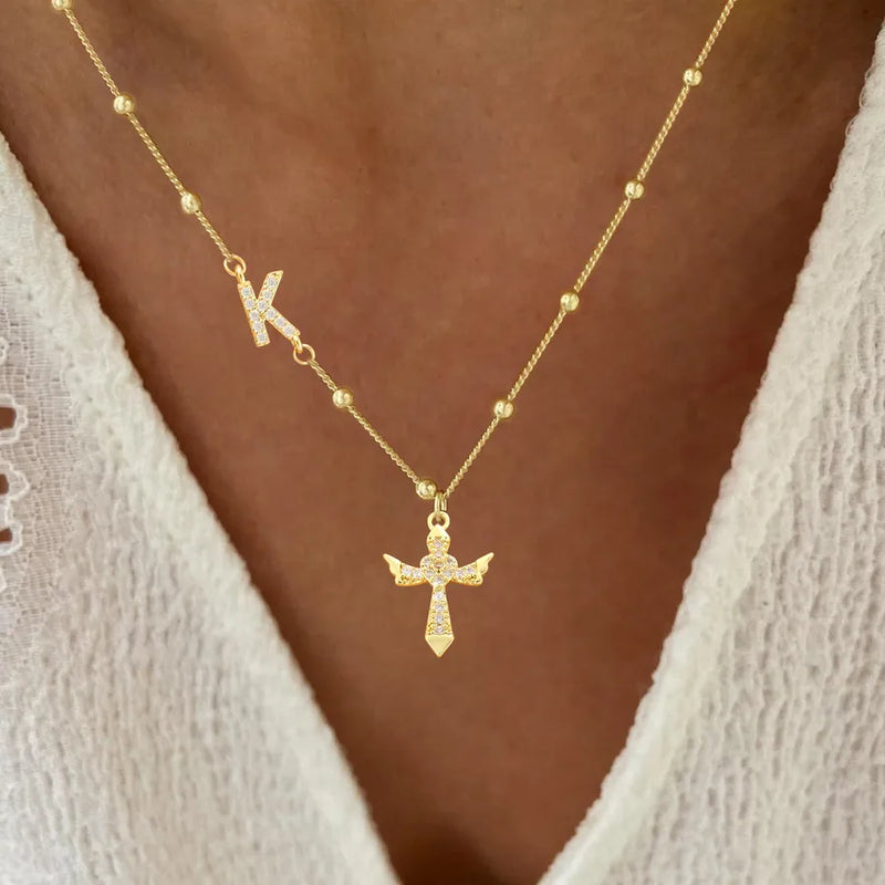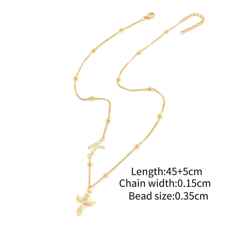 Wholesale Jewelry Simple Style Classic Style Cross Letter 201 Stainless Steel Copper Zircon Side Clip Ball Chain Pendant Necklace