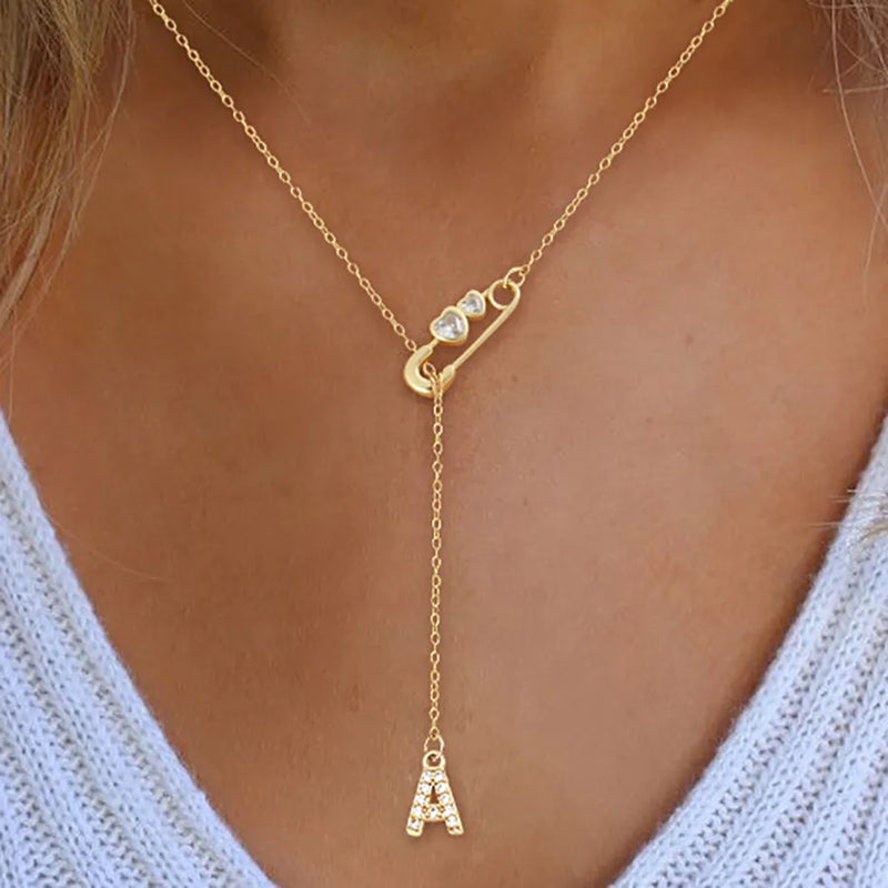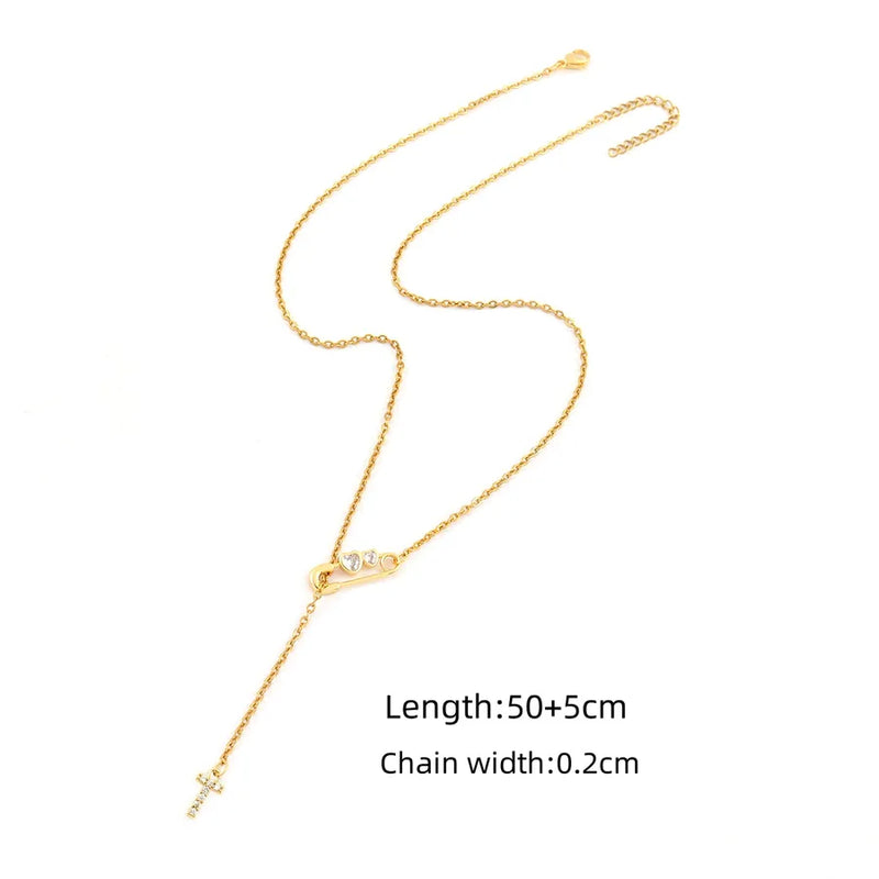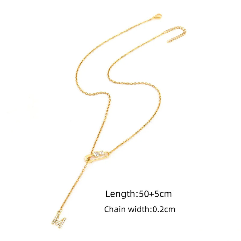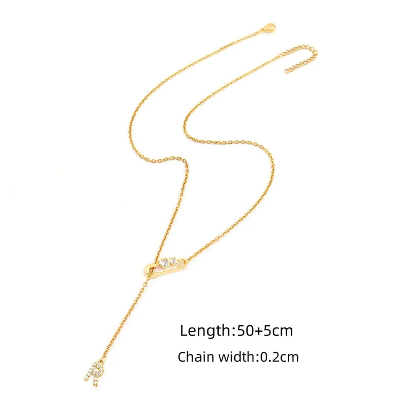 Wholesale Jewelry Simple Style Classic Style Pin Letter Heart Shape 201 Stainless Steel 304 Stainless Steel Copper Artificial Crystal cable chain Pendant Necklace