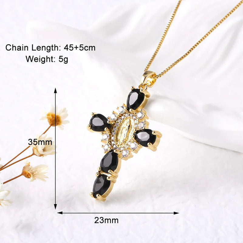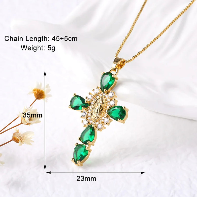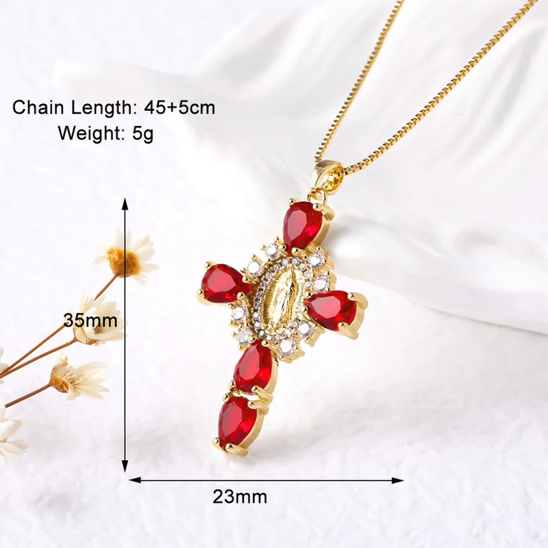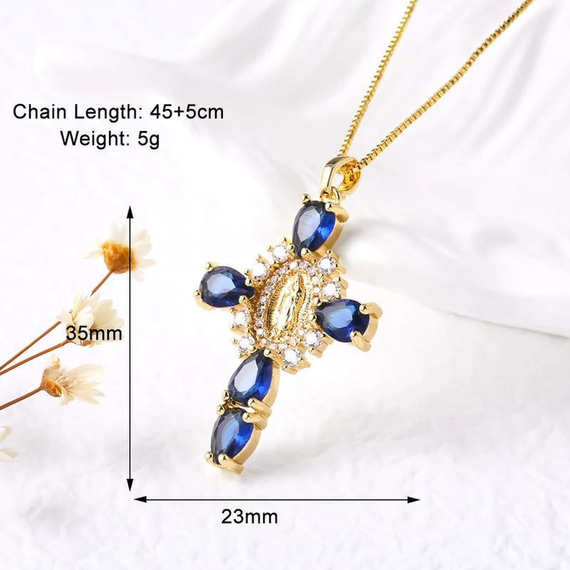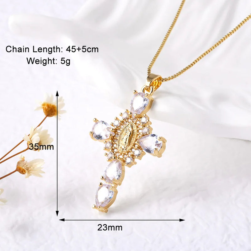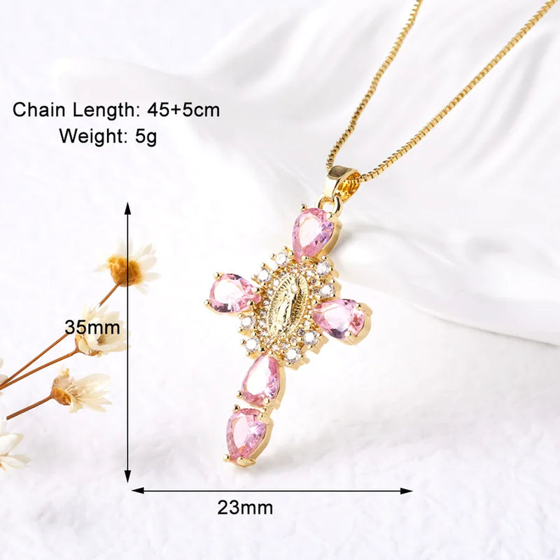 Wholesale Jewelry Simple Style Cross Copper Zircon 18K Gold Plated Plating Inlay box chain Pendant Necklace