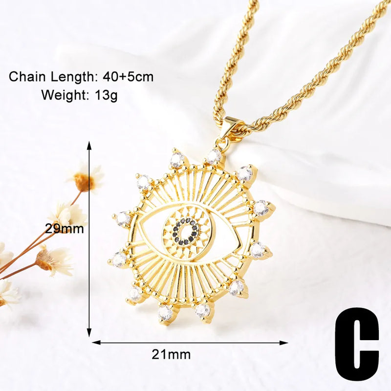 Wholesale Jewelry Simple Style Eye Copper Zircon 18K Gold Plated Plating Inlay cable chain Pendant Necklace