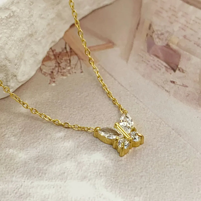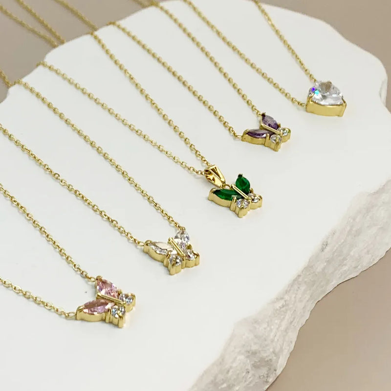 Wholesale Jewelry Simple Style Heart Shape Butterfly 304 Stainless Steel coffee bean chain cable chain Pendant Necklace