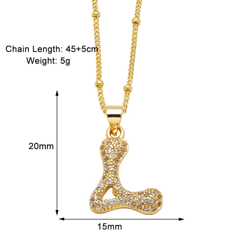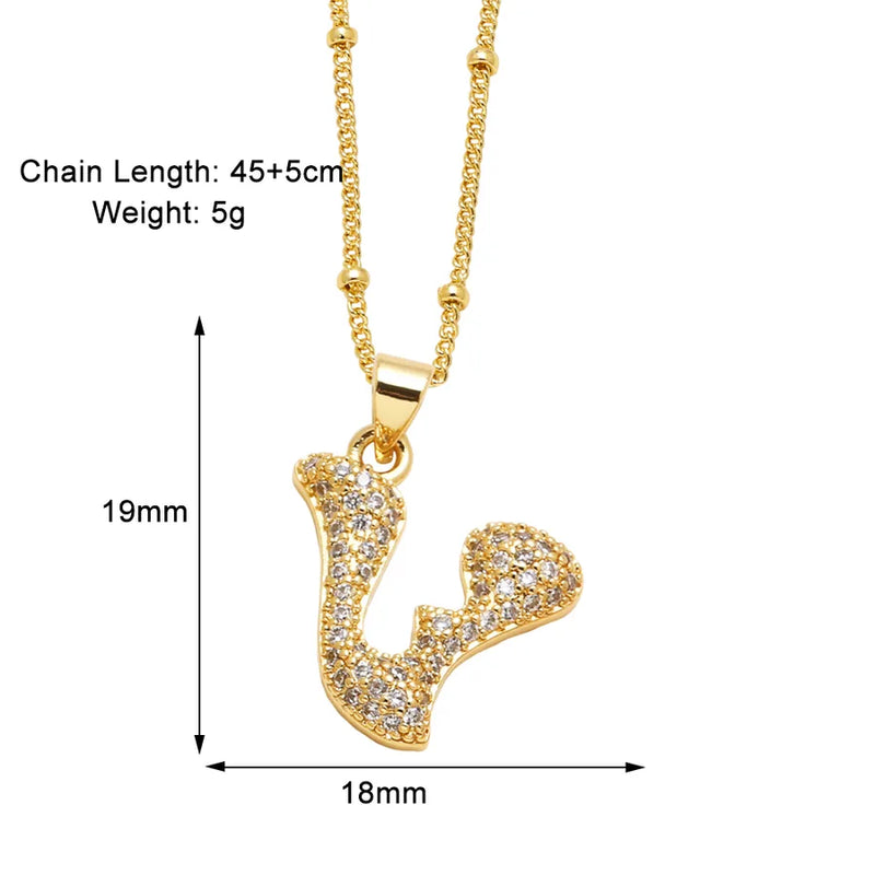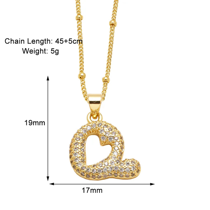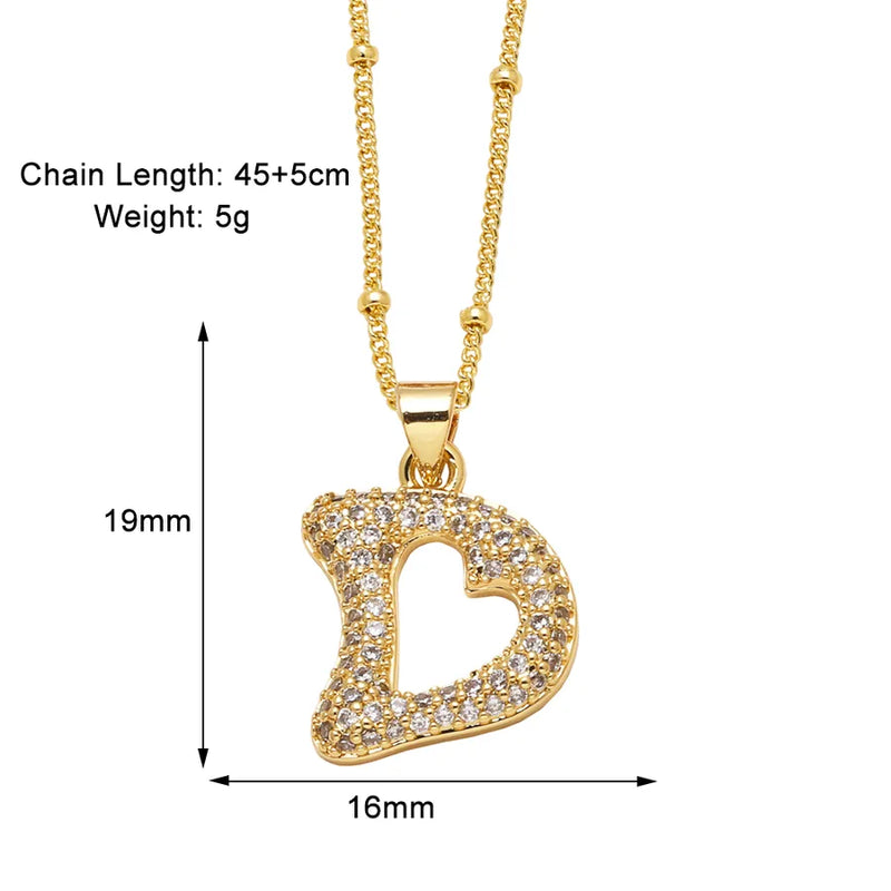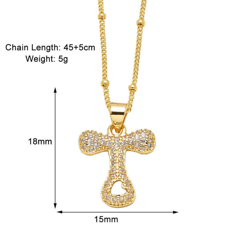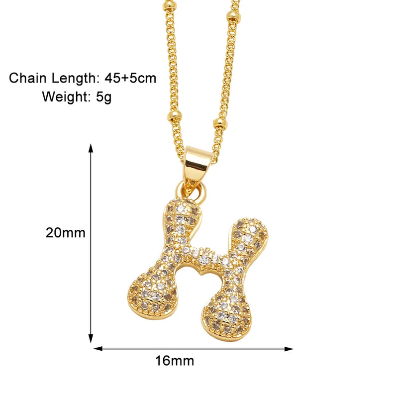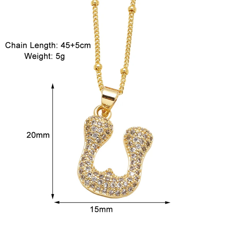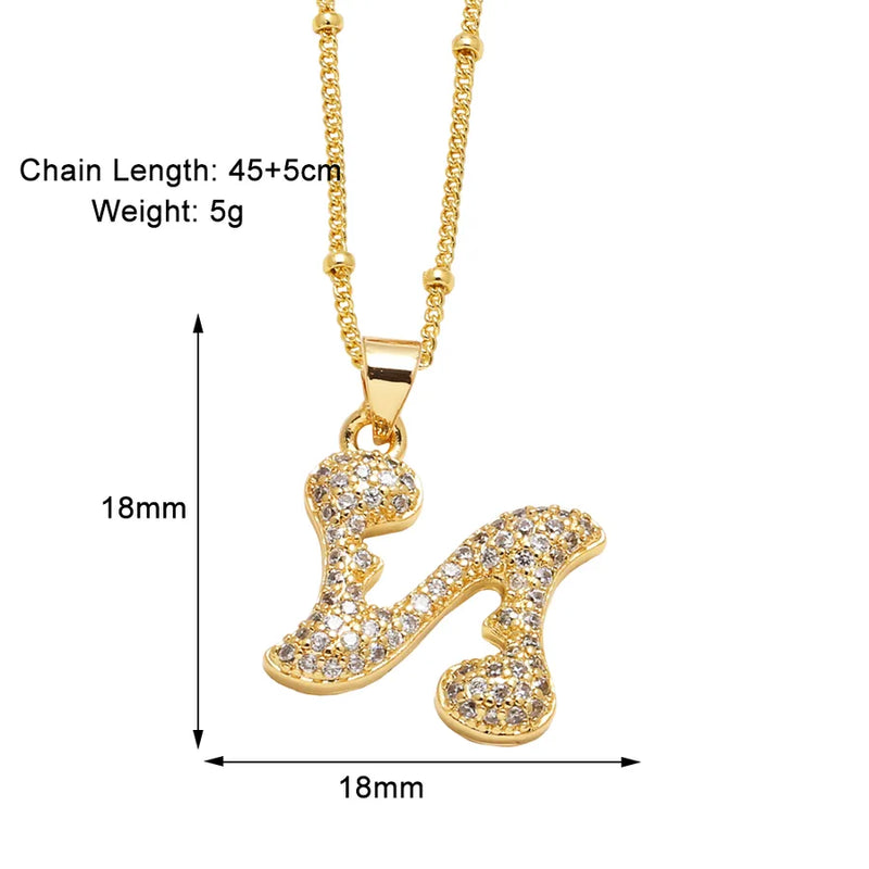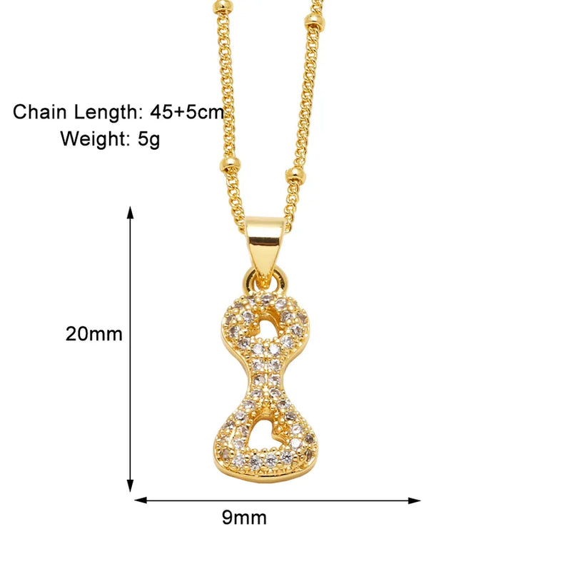 Wholesale Jewelry Simple Style Letter Copper Zircon 18K Gold Plated Plating Inlay cable chain Pendant Necklace