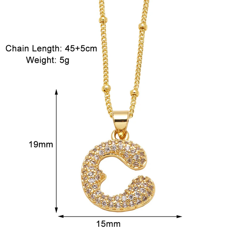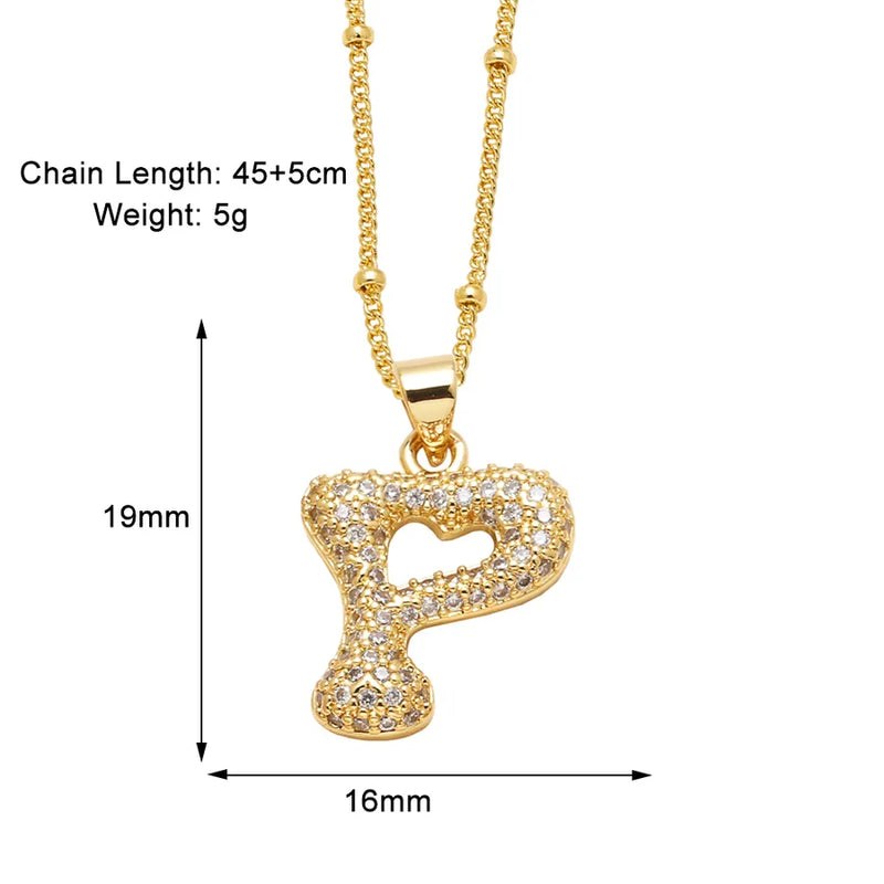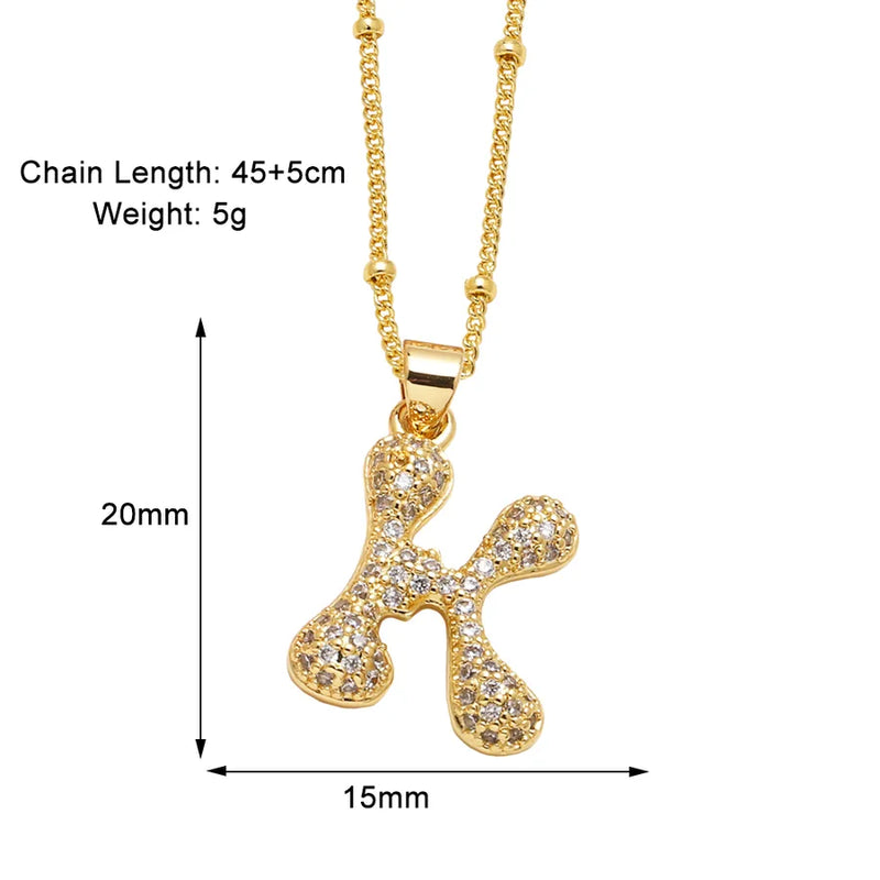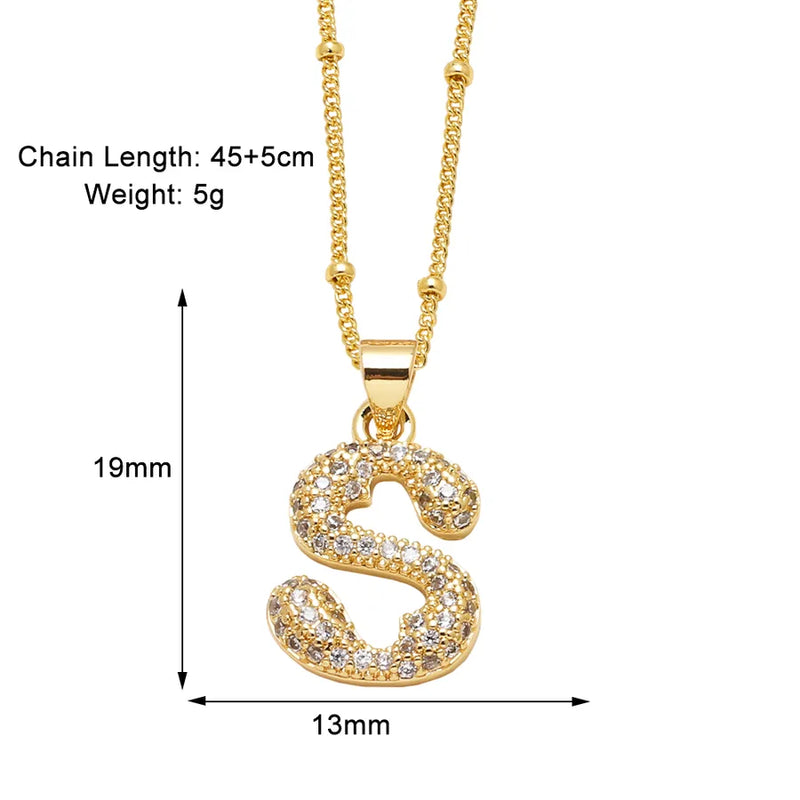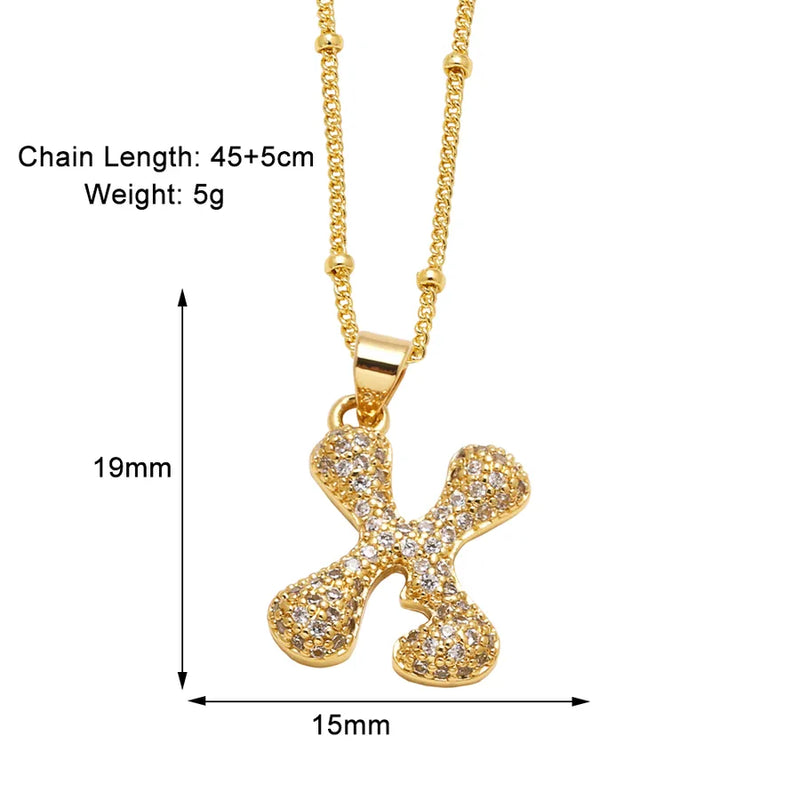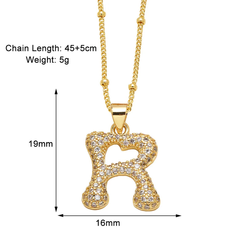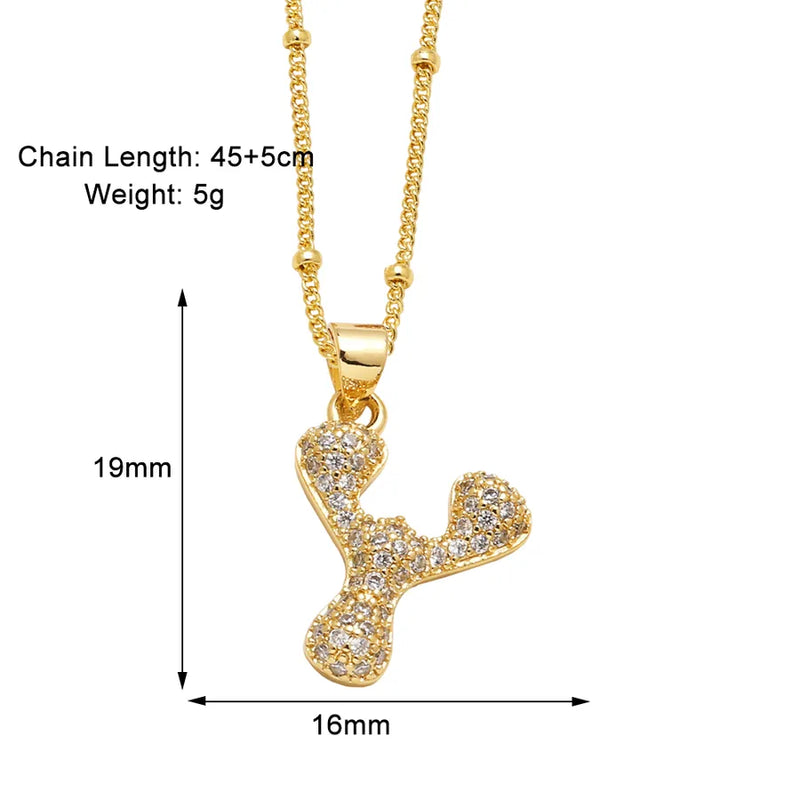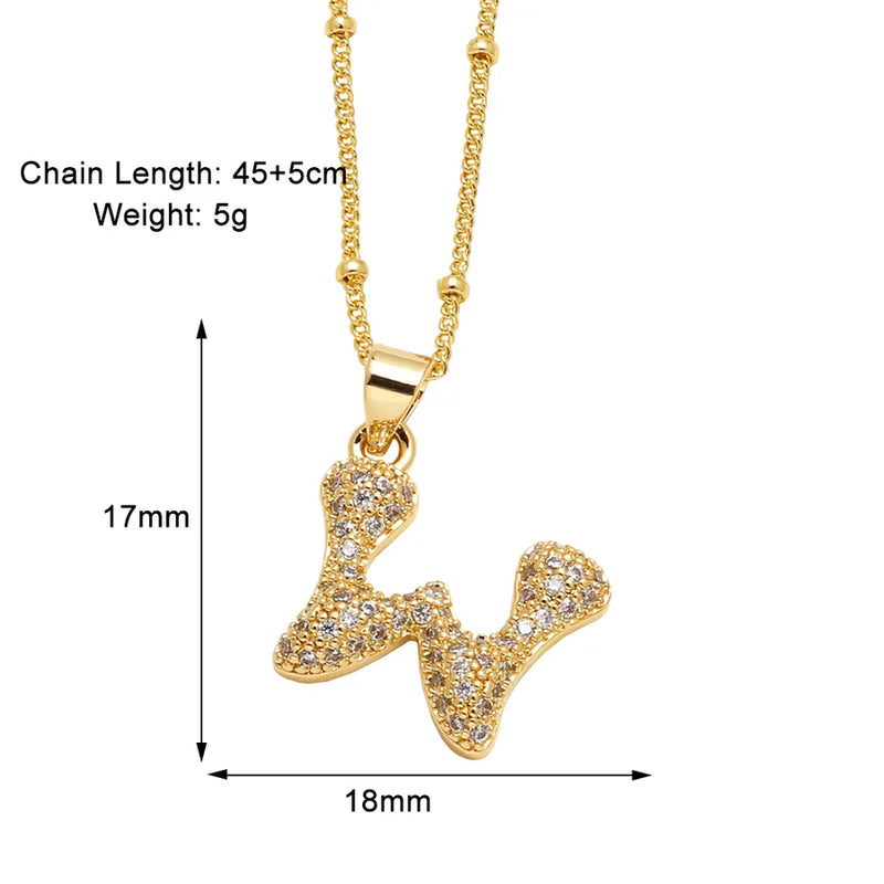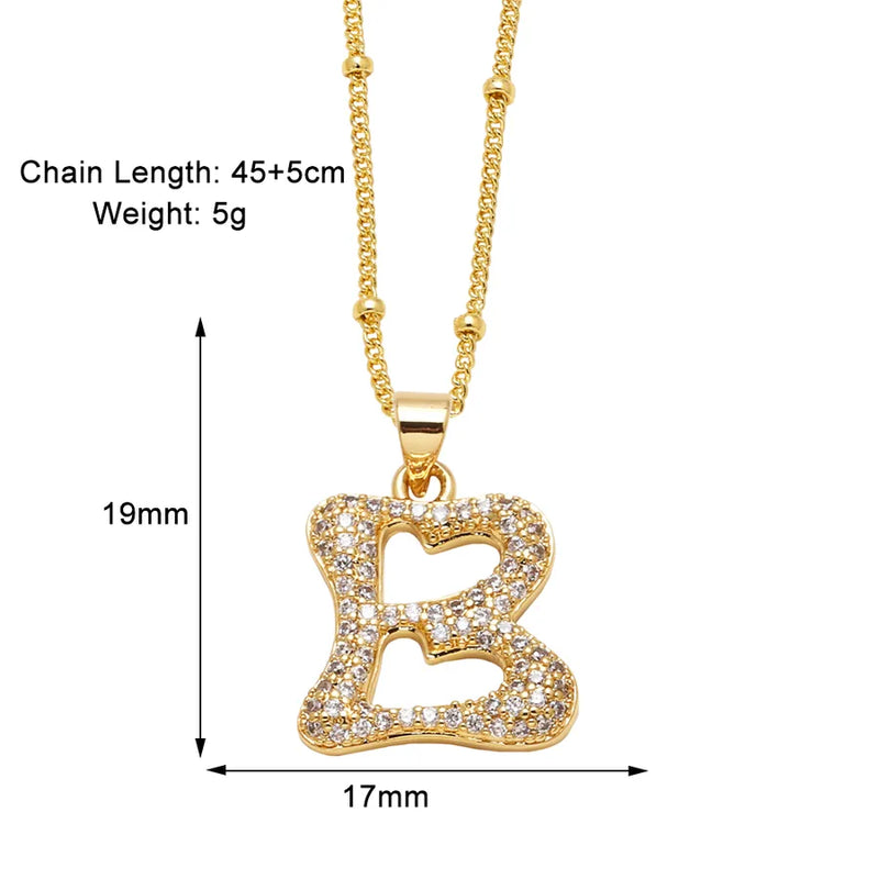 Wholesale Jewelry Simple Style Letter Copper Zircon 18K Gold Plated Plating Inlay cable chain Pendant Necklace