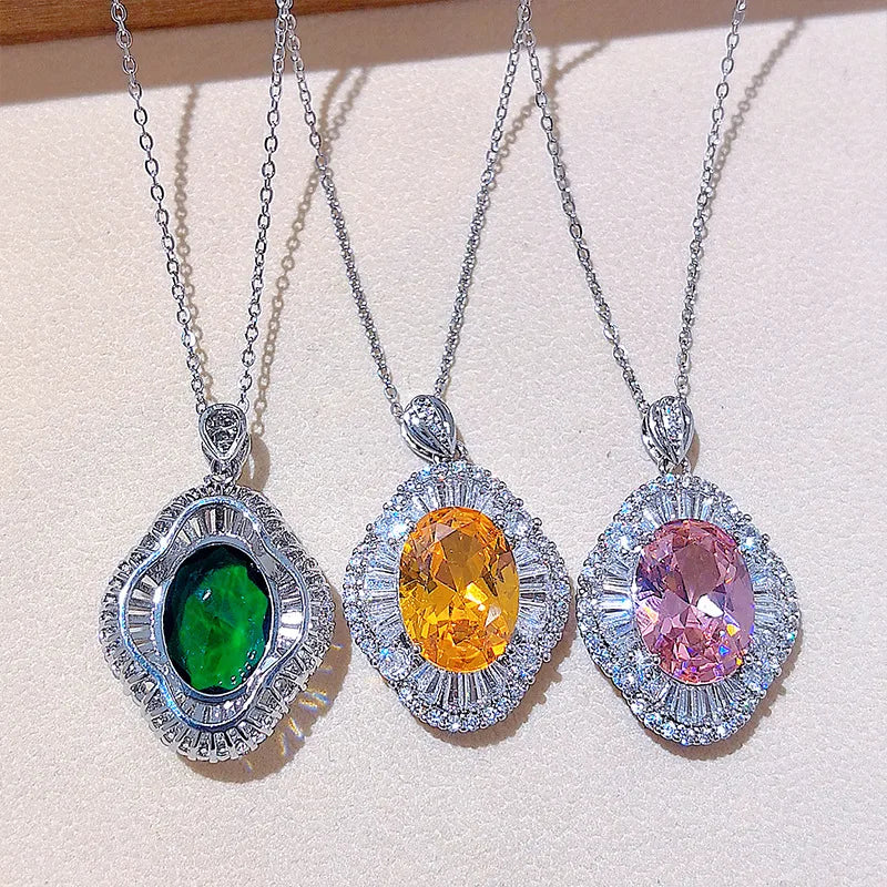 Wholesale Jewelry Simple Style Shiny Geometric Copper Zircon cable chain Pendant Necklace