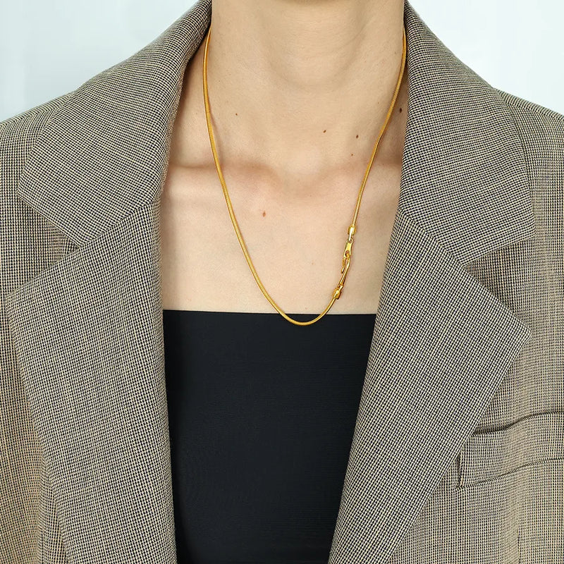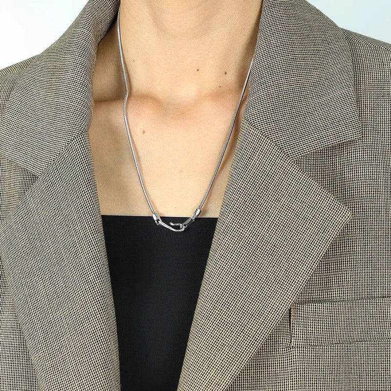 Wholesale Jewelry Simple Style Solid Color Lines Titanium Steel Buckle Sweater Chain