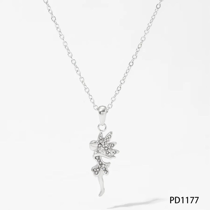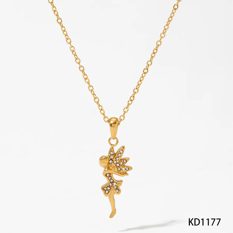 Wholesale Jewelry Sweet Angel 304 Stainless Steel 16K Gold Plated White Gold Plated cable chain Pendant Necklace