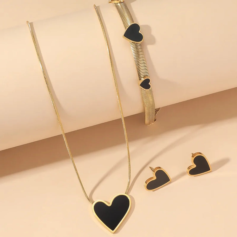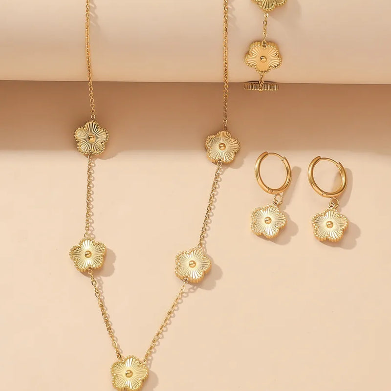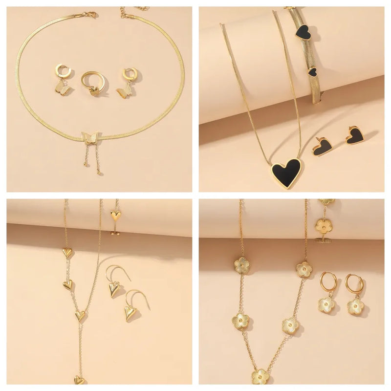 Wholesale Jewelry Vacation Classic Style Four Leaf Clover Heart Shape Butterfly 304 Stainless Steel 18K Gold Plated cable chain snake chain Jewelry Set