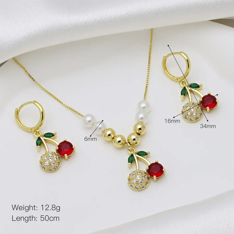 Wholesale Jewelry Vacation Simple Style Cherry Copper Zircon Inlay Jewelry Set box chain