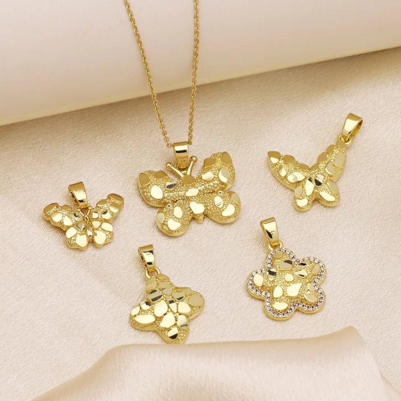 Wholesale Jewelry Vintage Style Flower Butterfly Copper Plating cable chain Pendant Necklace