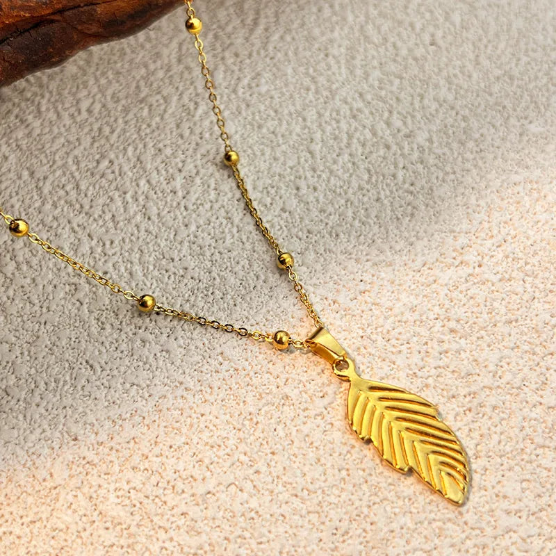 Wholesale Jewelry Vintage Style Hawaiian Classic Style Maple Leaf 304 Stainless Steel December Birthstone Turquoise 18K Gold Plated Plating snake chain Pendant Necklace
