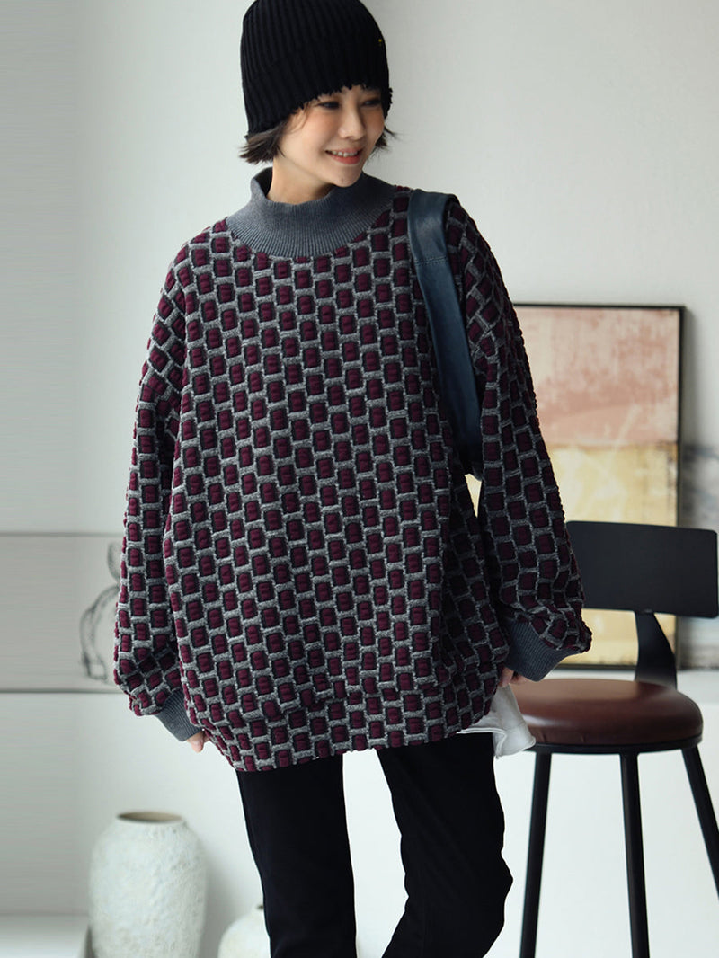 This blouse is primed for autumn and winter. with its classic plaid pattern. half-turtleneck collar. and full-length raglan sleeves. Its vintage styling will keep you toasty through autumn and winter.