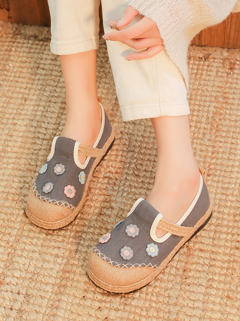 Women Artsy Summer Flower Embroidery Linen Shoes