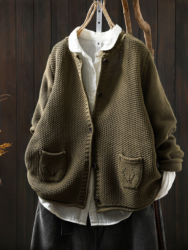 Women Autumn Artsy Pure Color Knitted O-Neck Sweater