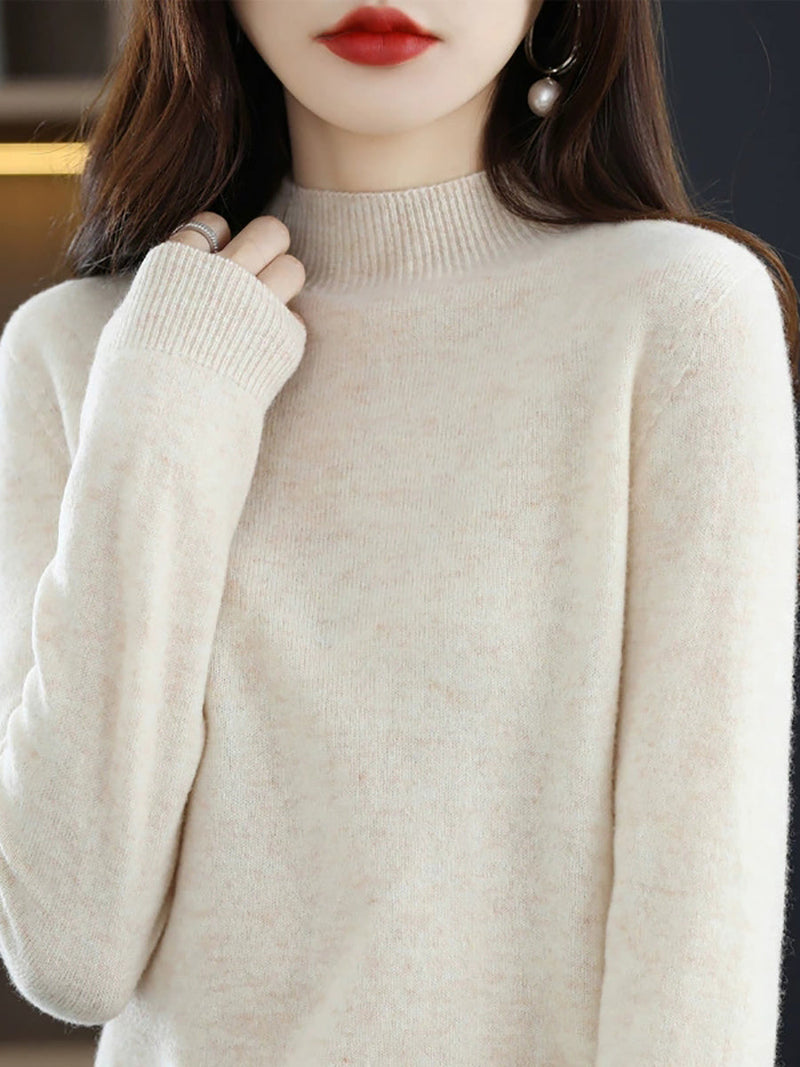 Women Autumn Casual Half-Turtleneck Knitted Wool Sweater