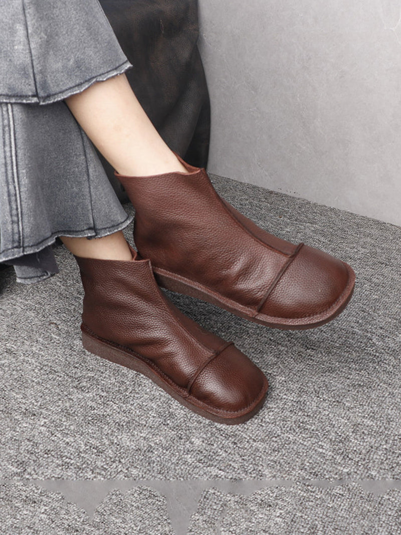 Women Autumn Casual Leather Spliced Low Heel Boots