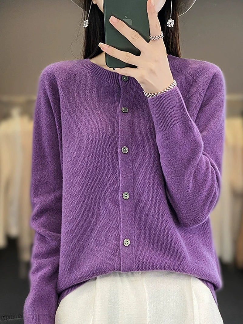 Women Autumn Casual O-Neck Knitted Wool Cardigan Sweater