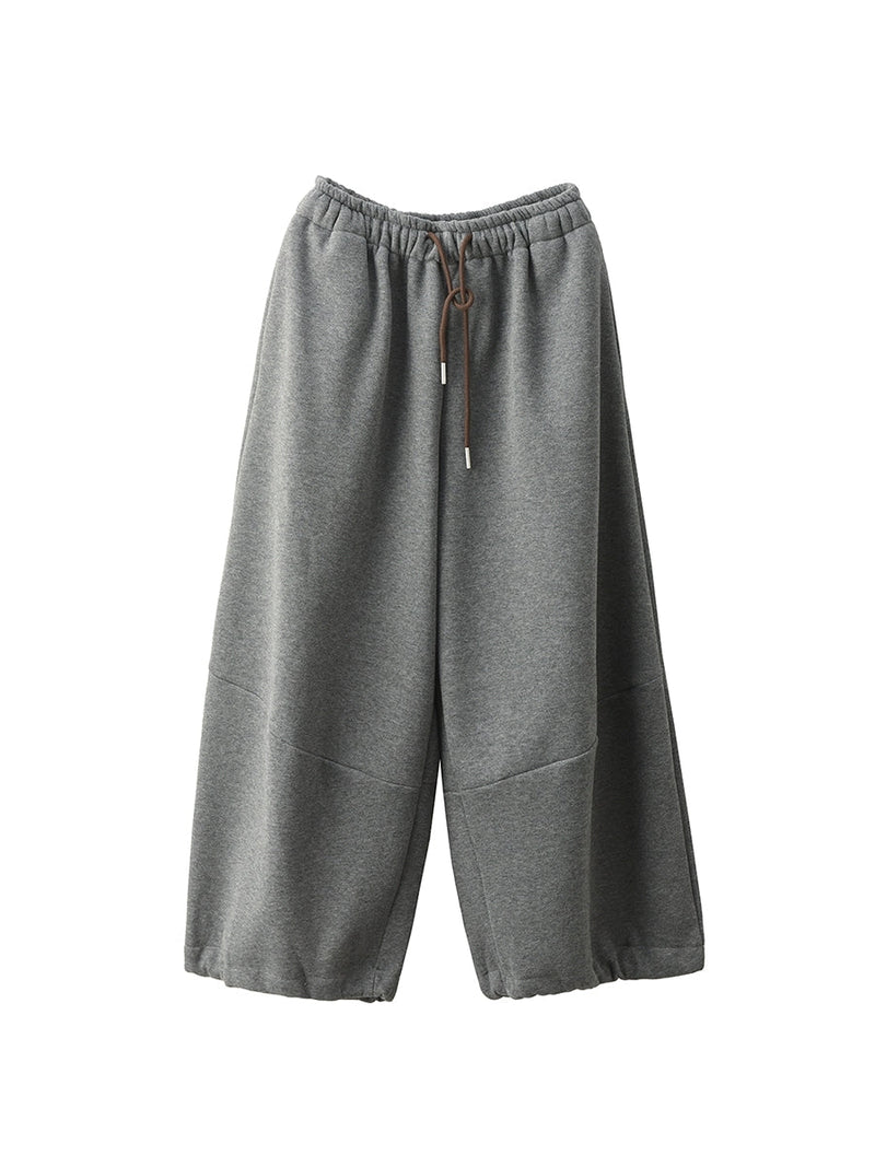 Women Autumn Casual Pure Color Fleece-lined Wide-leg Pants