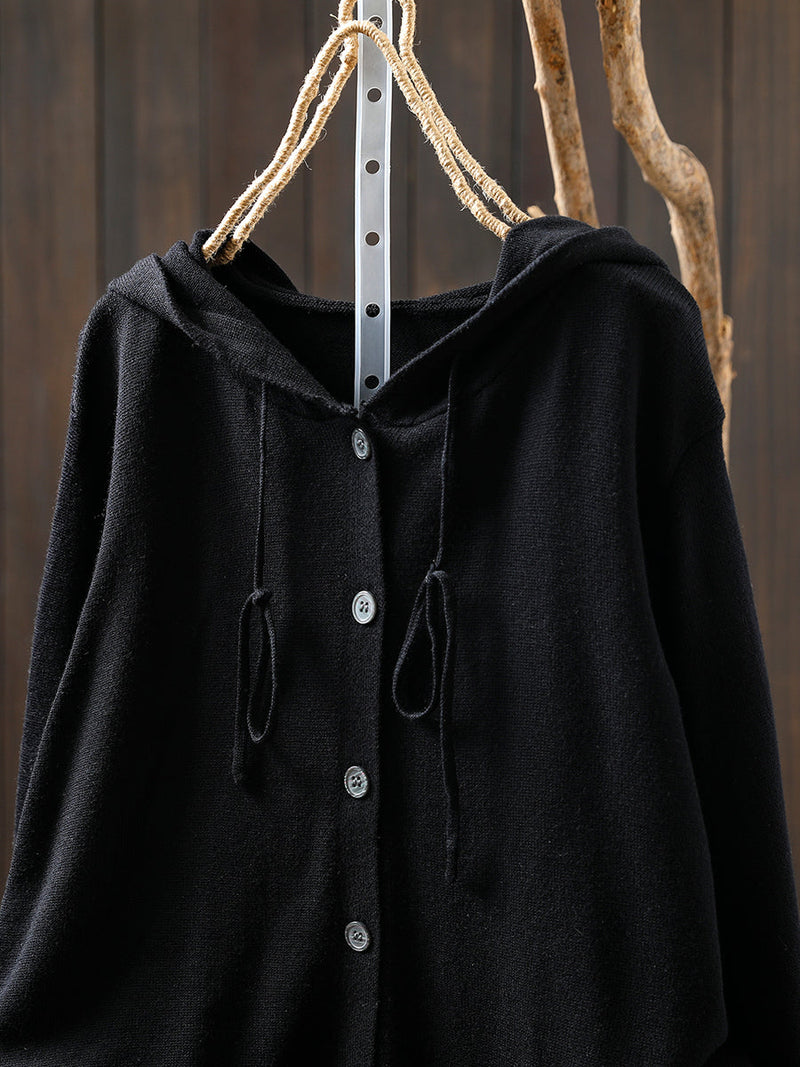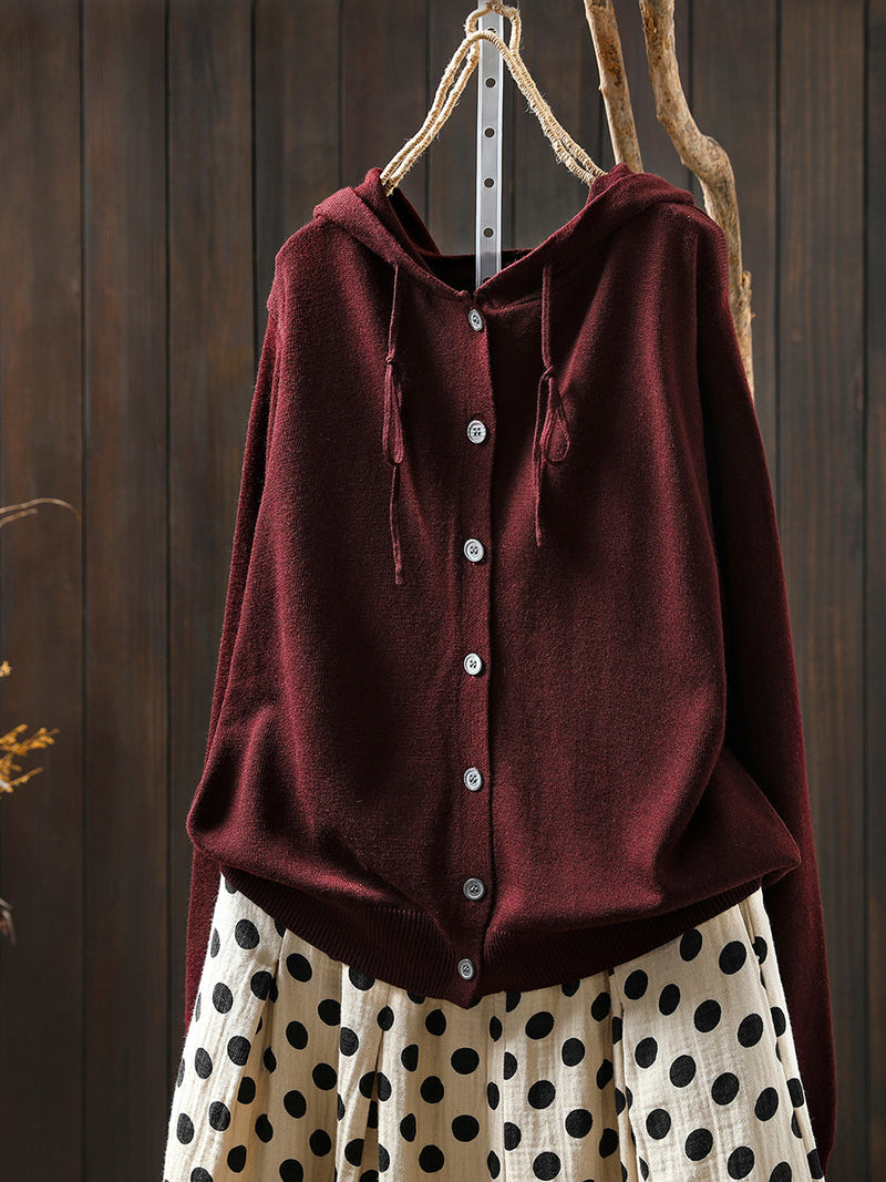 Women Autumn Casual Pure Color Hooded Knitted Blouse