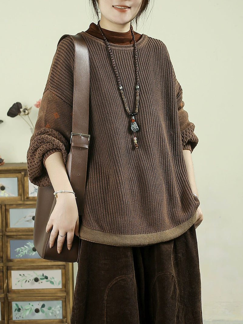 Women Autumn Casual Pure Color O-Neck Knitted Sweater