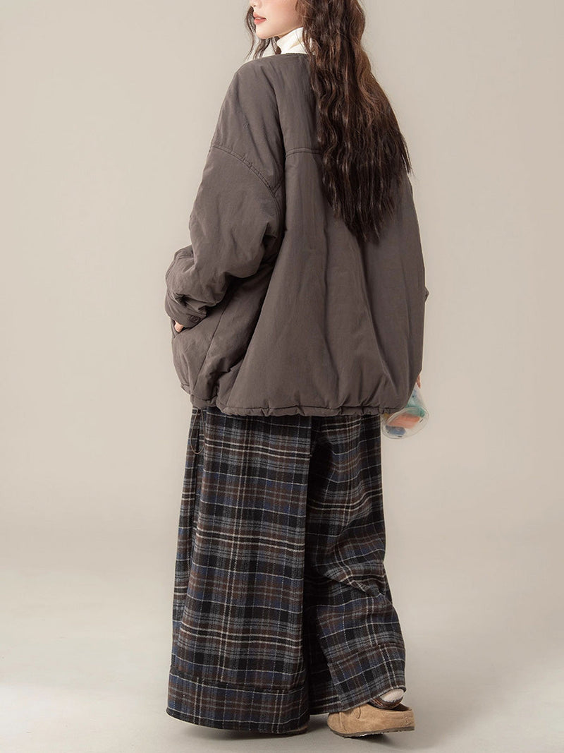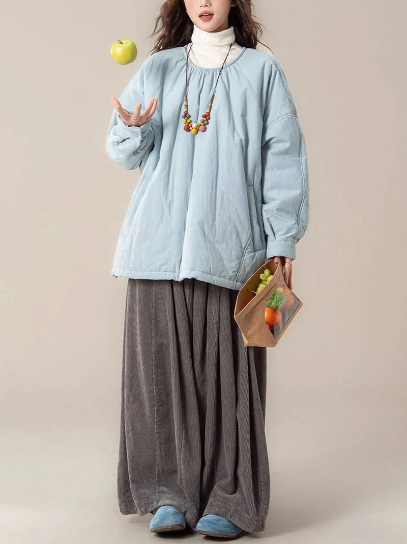 Women Autumn Casual Pure Color O-Neck Padded Blouse