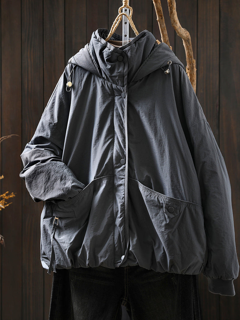 Women Autumn Casual Pure Color Padded Hooded Jacket