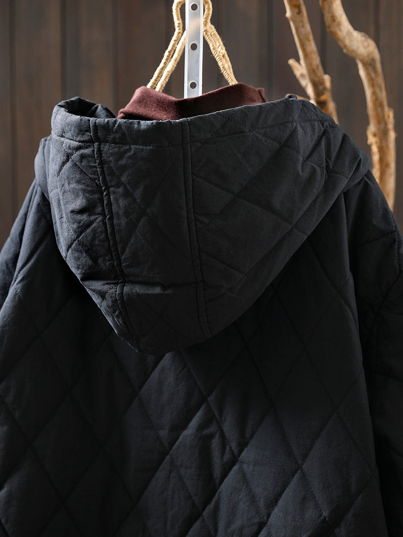 Women Autumn Casual Pure Color Padded Hooded Jacket
