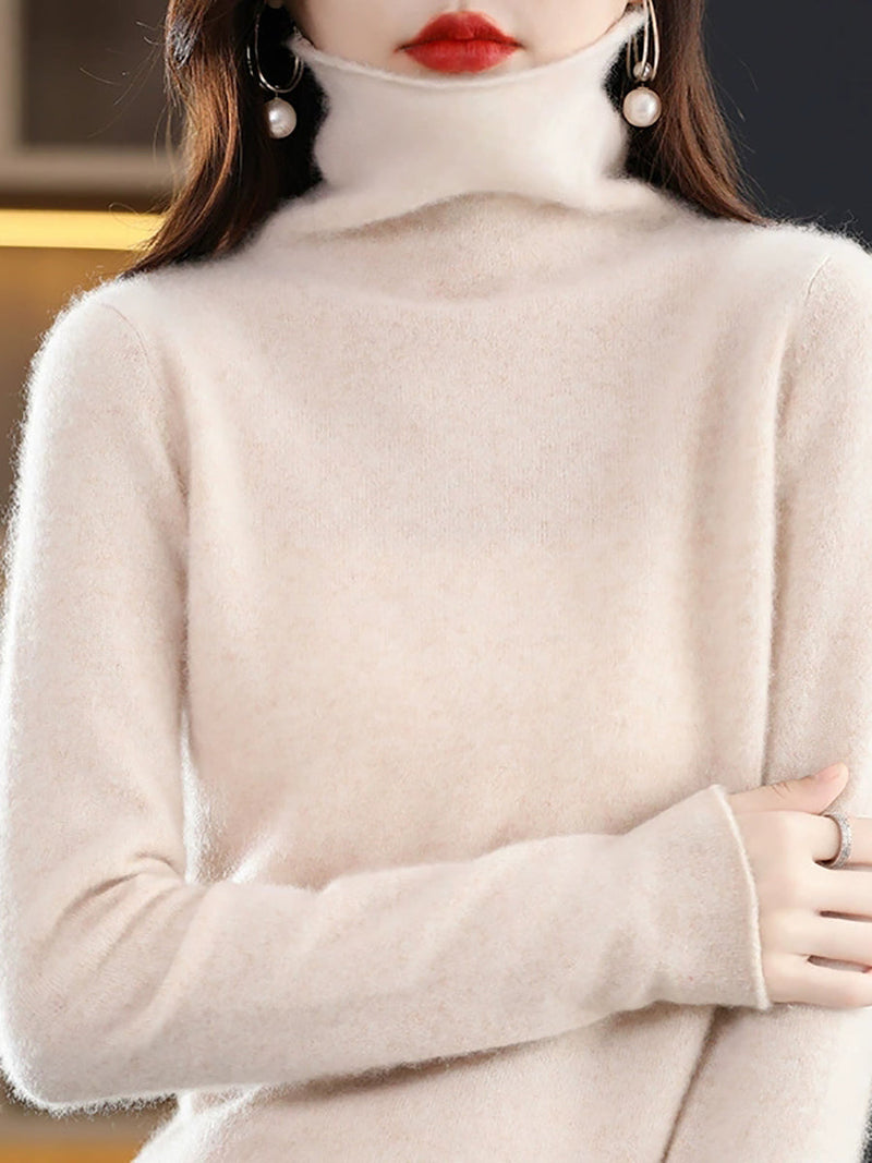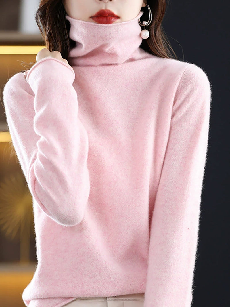 Women Autumn Casual Turtleneck Knitted Wool Sweater