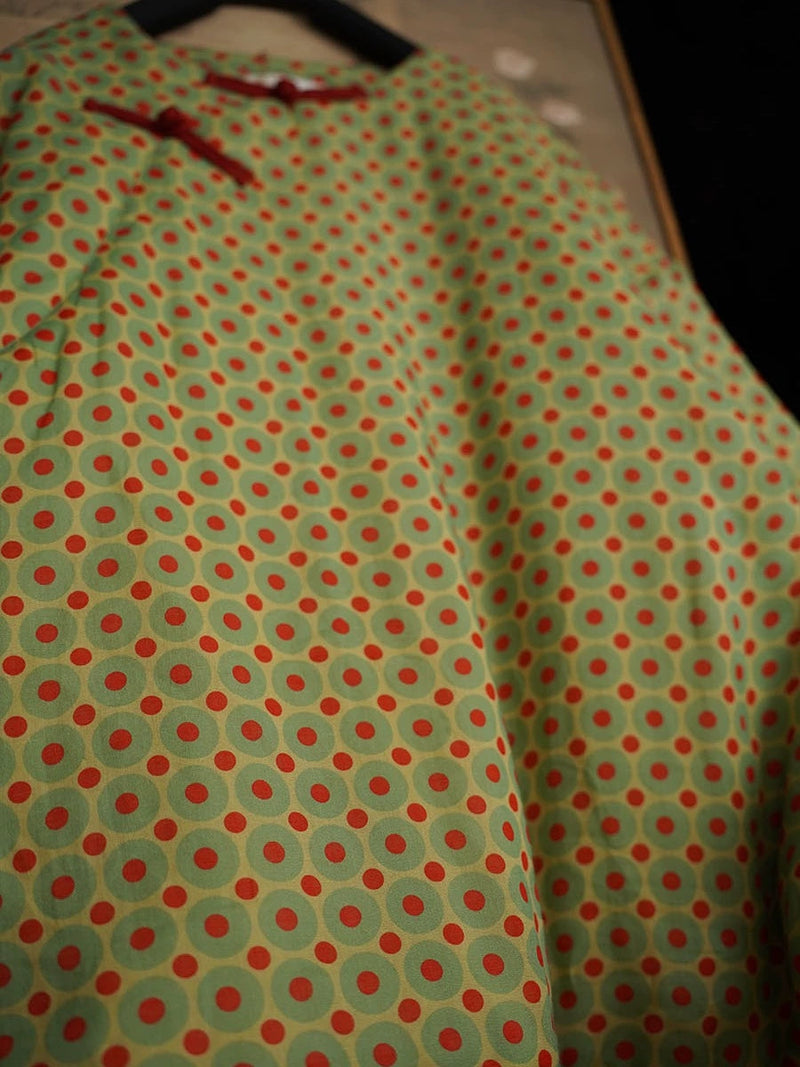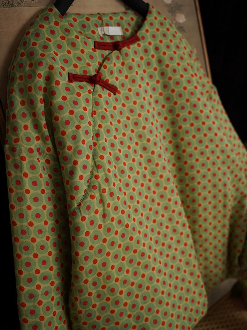 This product is made of ramie and filled with cotton. featuring an ethnic print pattern and a stand collar. The full sleeves have a regular and retro style. perfect for a fashionable and warm autumn or winter.