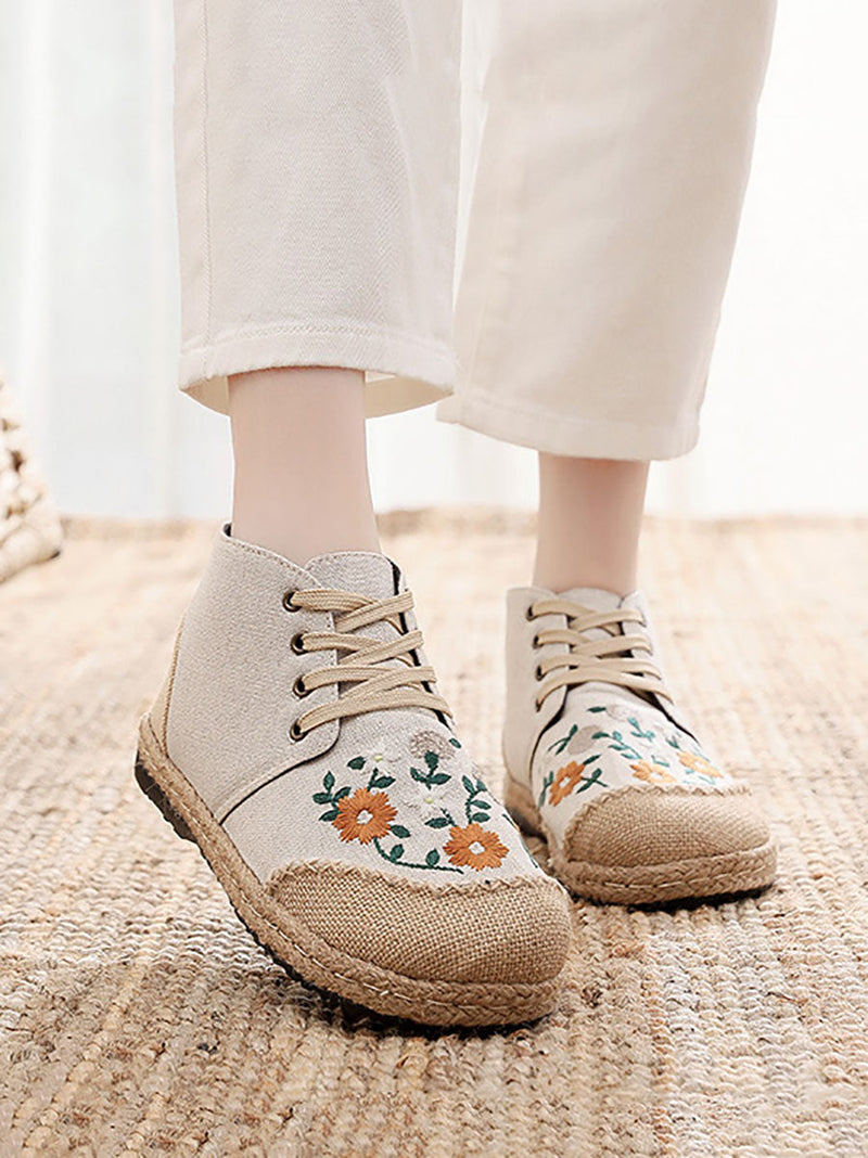 Women Autumn Ethnic Linen Embroidery Cloth Boots