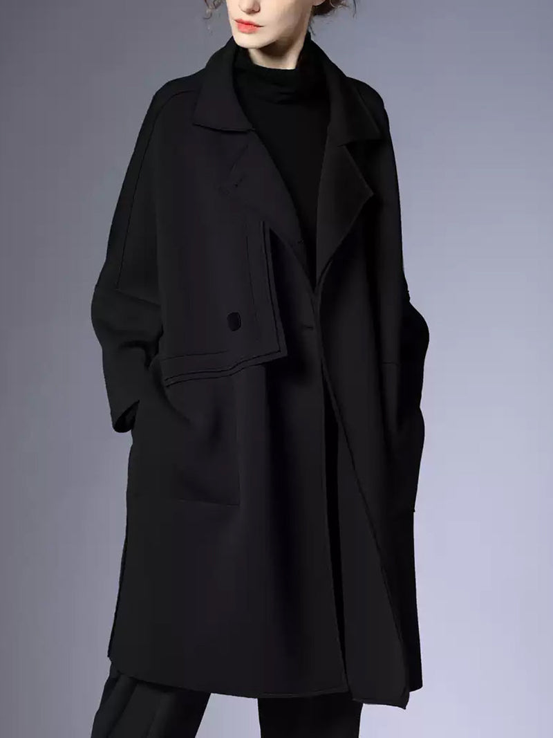 Plus Size Women Autumn Fashion Solid Buttoned Coat