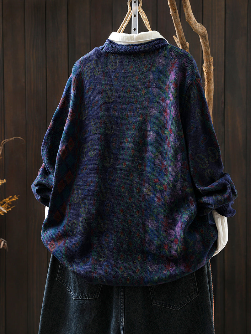 Women Autumn Flower V-Neck Knitted Sweater Coat