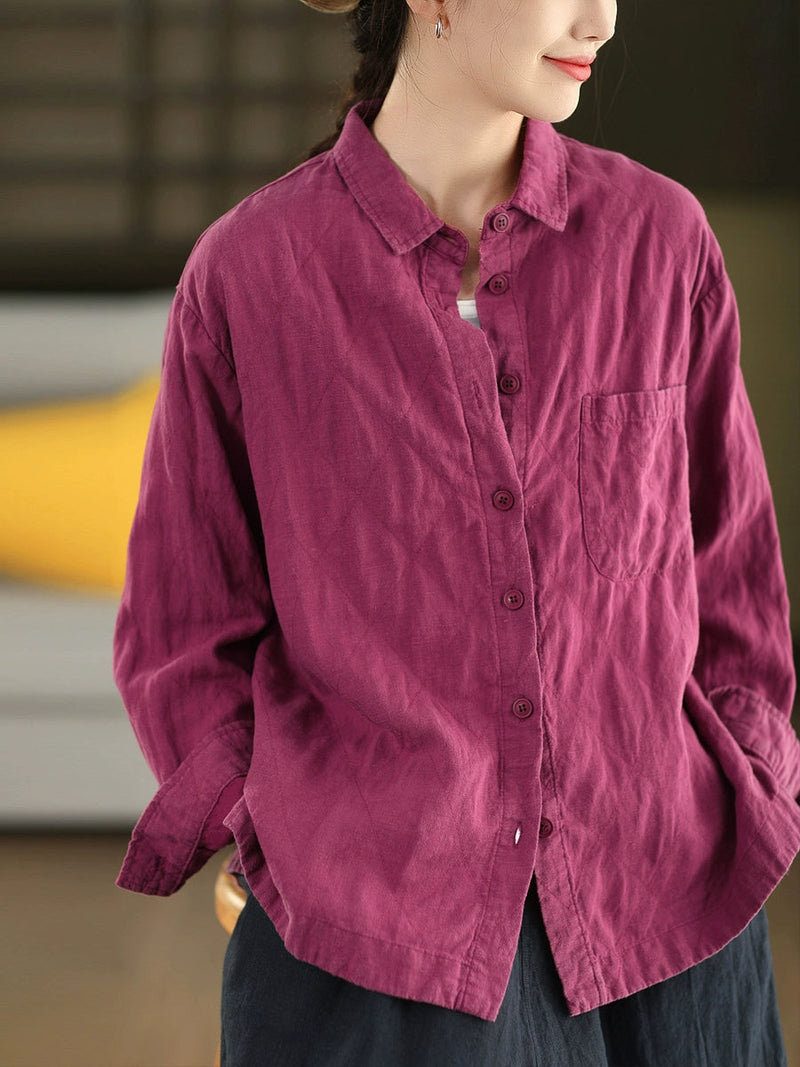 Women Autumn Pure Color 100%Linen Turn-down Collar Shirt