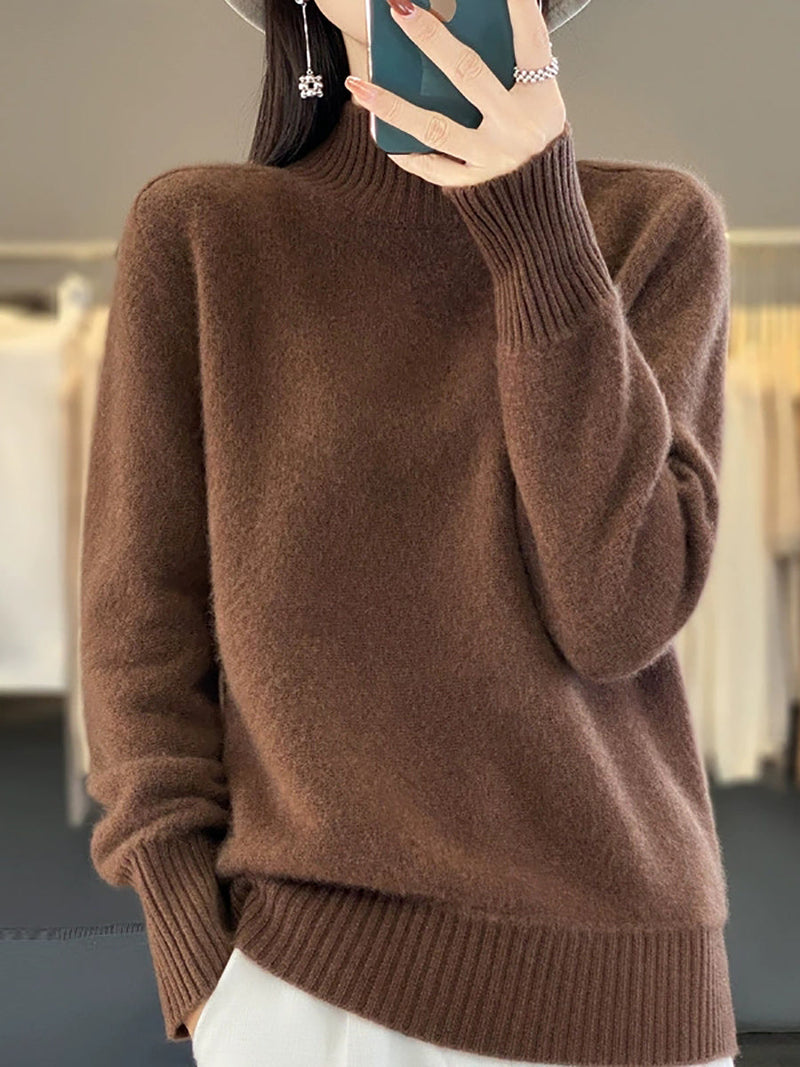 Women Autumn Pure Color 100%Wool Half-Turtleneck Sweater