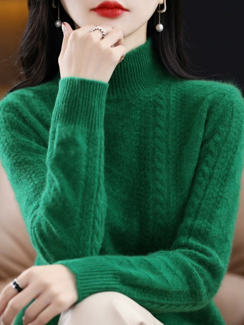 Women Autumn Pure Color Wool Half-Turtleneck Sweater