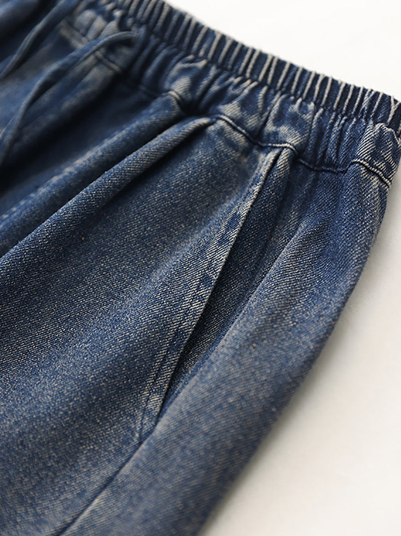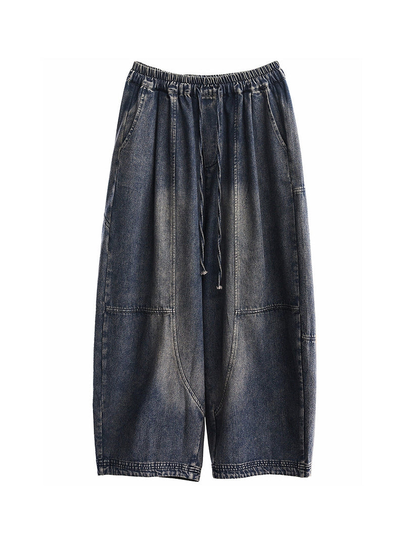 Women Autumn Retro Pure Color Denim Spliced Harem Pants