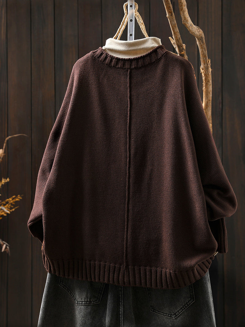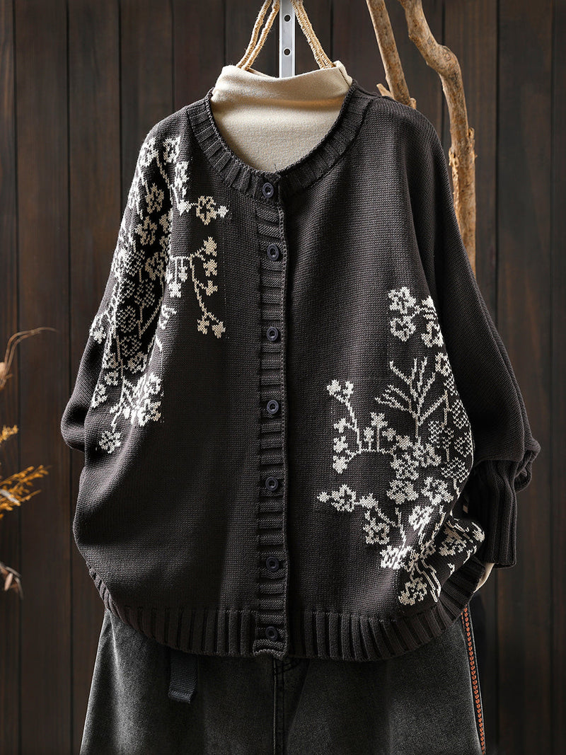 Women Autumn Vintage Flower O-Neck Knitted Sweater