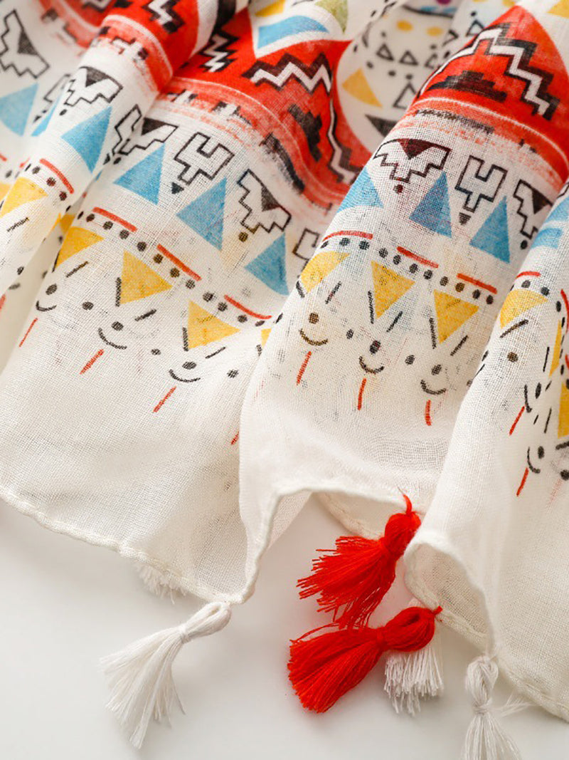 Women Bohemia Geometric Print Tassel Shawl Scarf