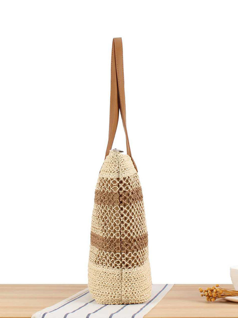 Women Casual Colorblock Straw Weave Shoulder Bag