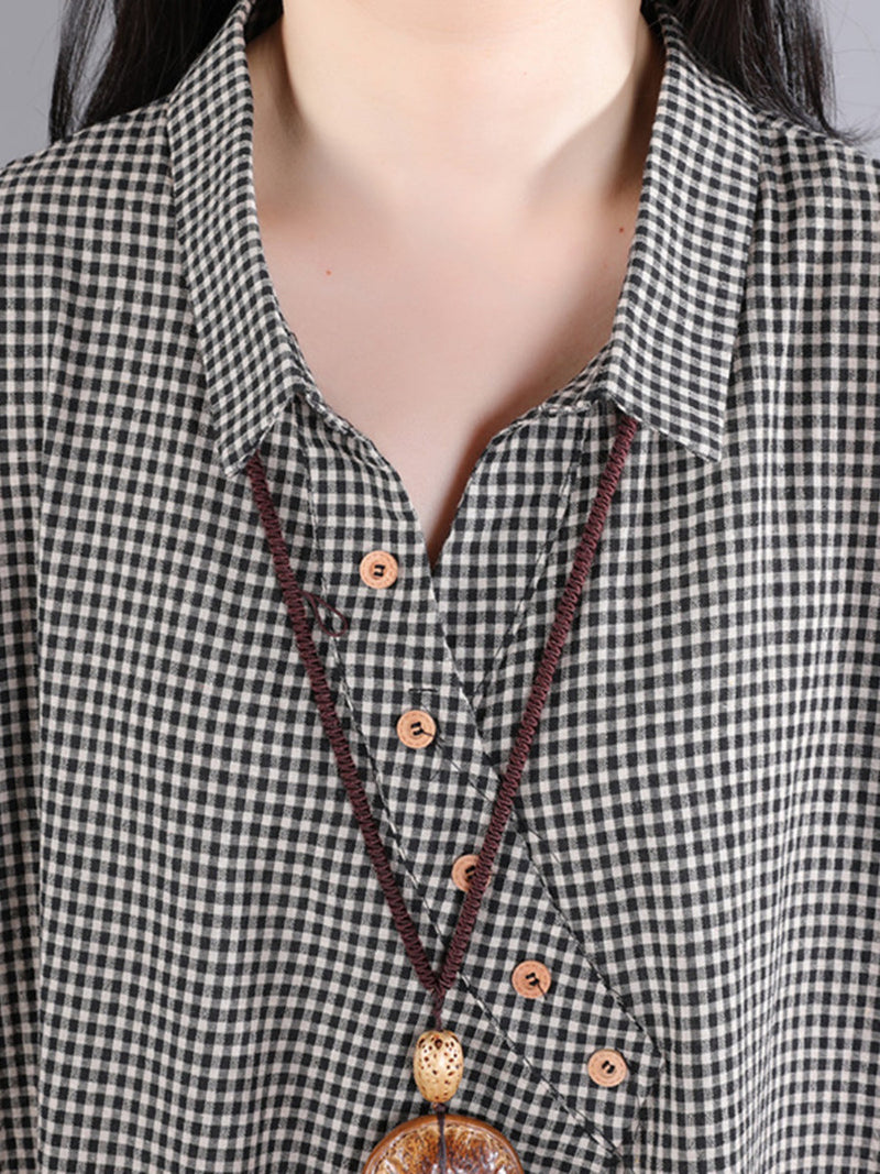 This dress offers comfort and style with its Cotton fabric. Turn-down Collar. Plaid pattern. Regular Sleeve. and Short Sleeve. Additionally. the calf-length dress features a convenient Pocket and Button closure. Perfect for the summer. this dress is the perfect blend of fashion and function.