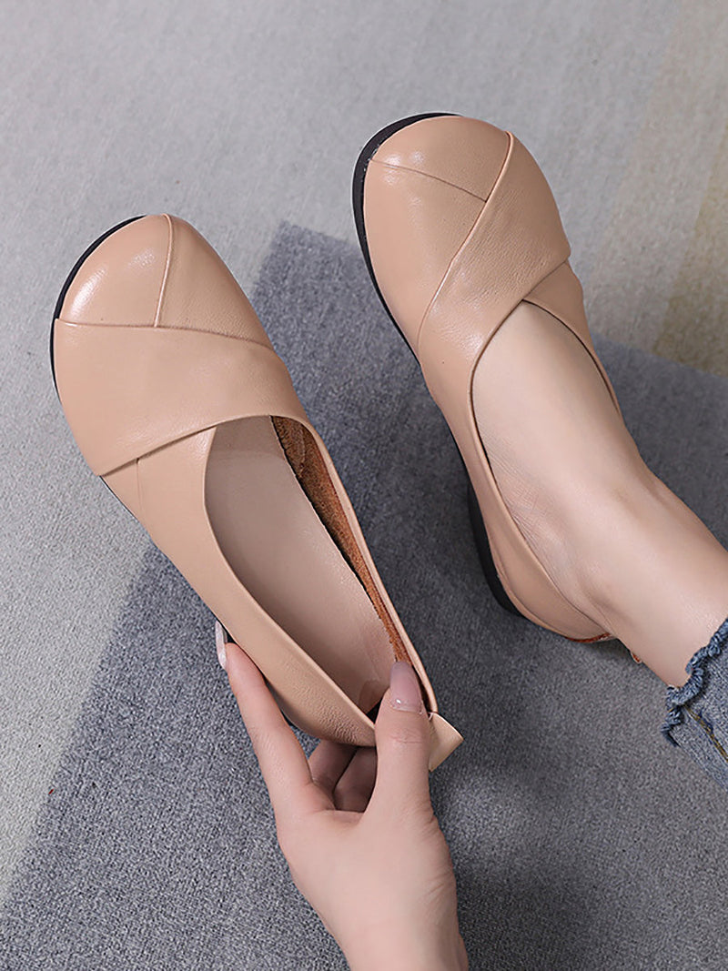Women Casual Soft Leather Spliced Low Heel Shoes