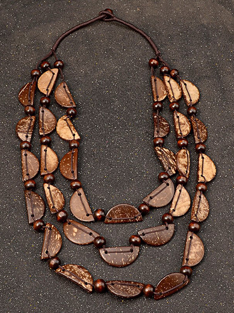 Women Ethnic Colorful Coconut Shell Three Layer Necklace