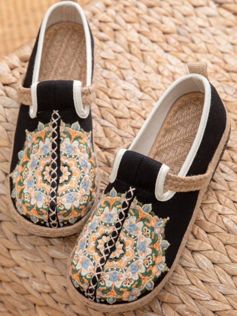Women Ethnic Flower Embroidery Linen Flat Shoes