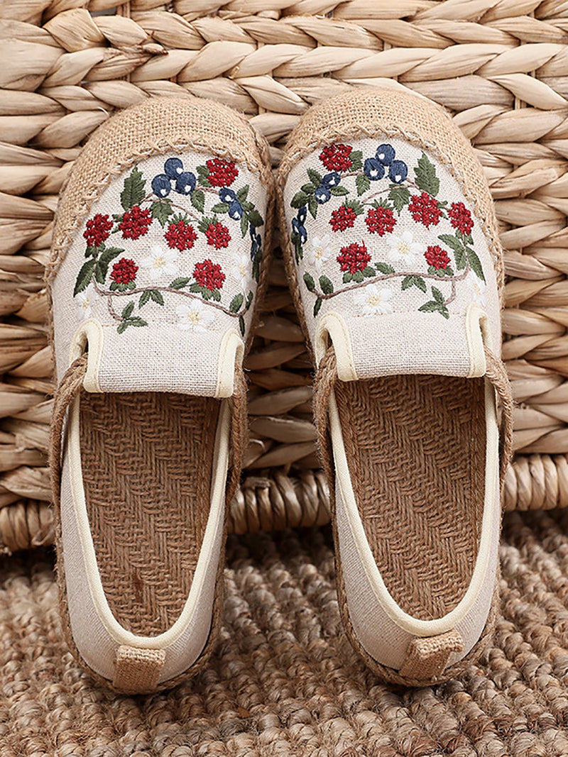Women Ethnic Flower Embroidery Flat Linen Shoes