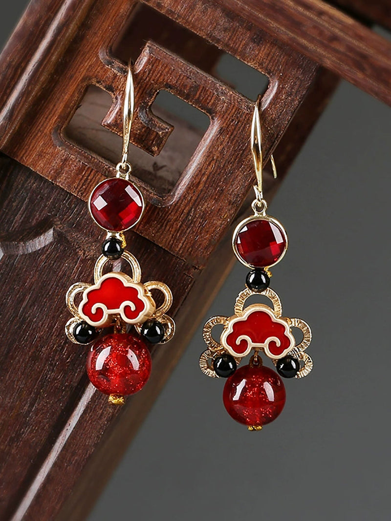 Women Ethnic Red Agate Glass Cloisonne S925Silver Earrings