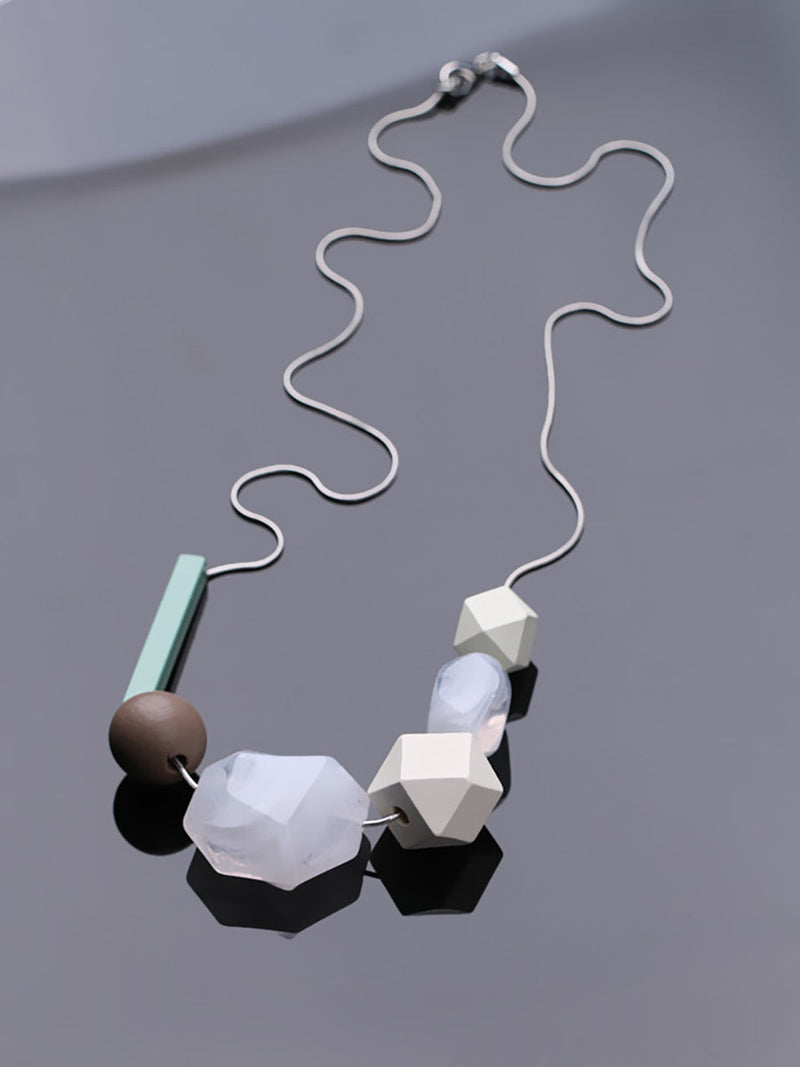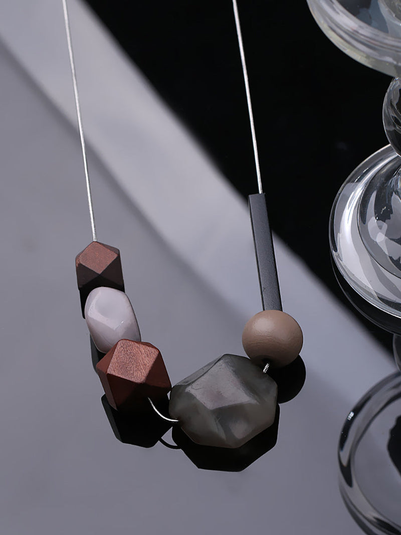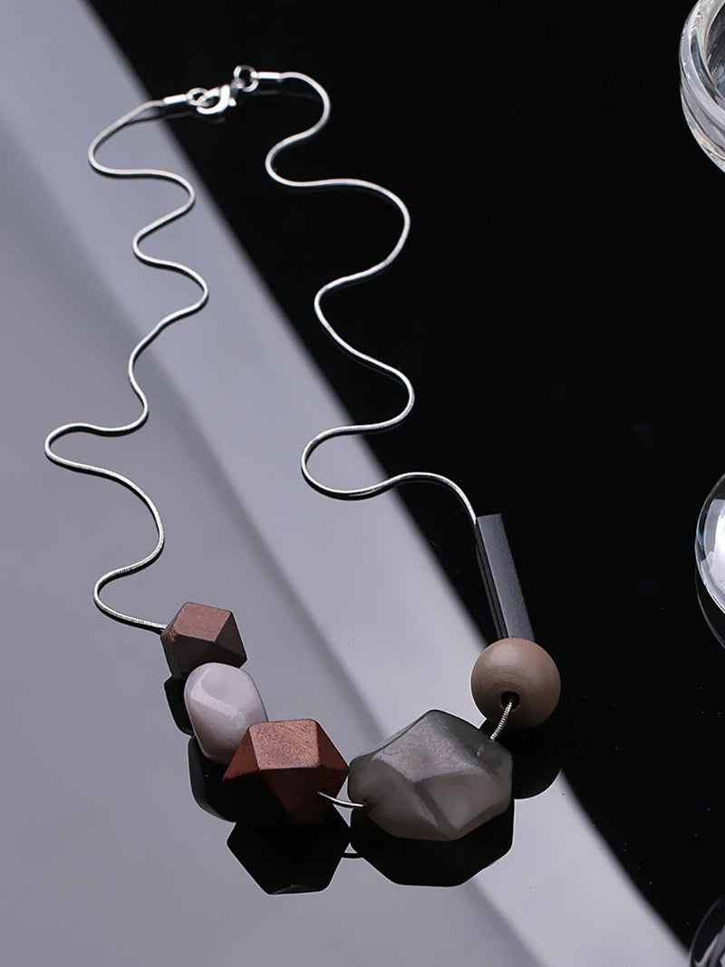 Women Ethnic Resin Stone Weave Necklace