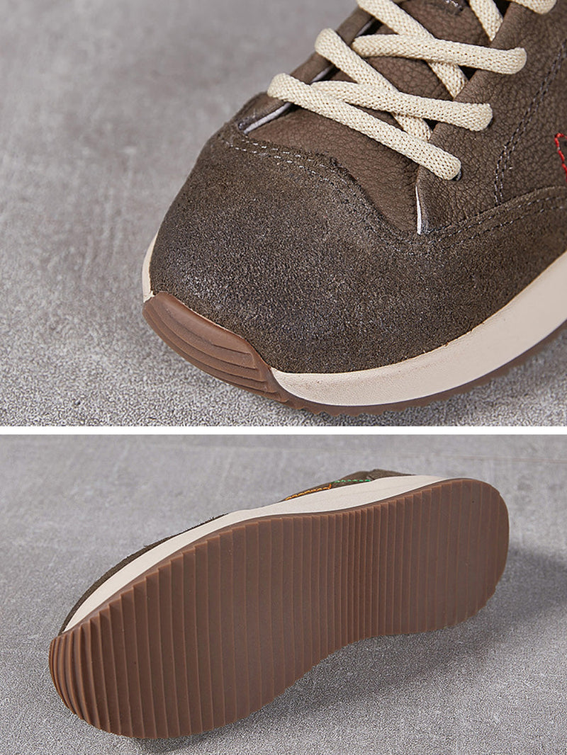 Women Genuine Leather Spliced Platform Sport Shoes